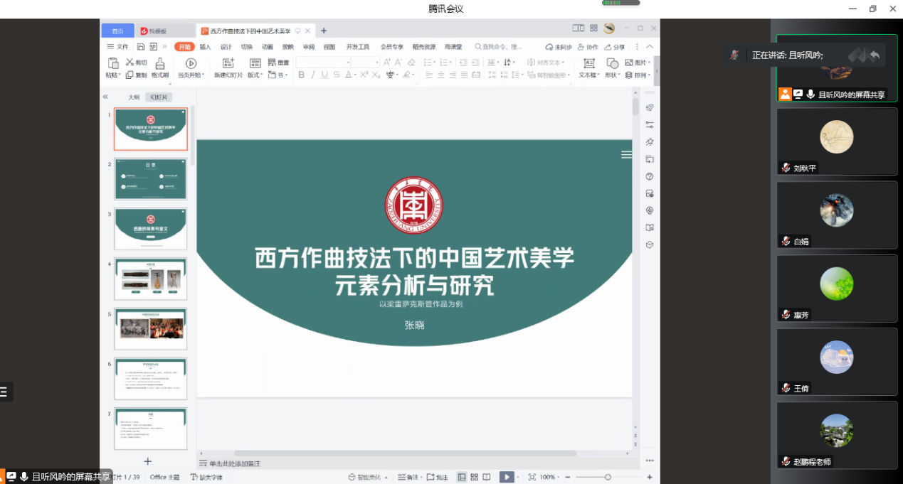 2022年11月23日,太阳网集团tcy8722青年学者学术论坛第四场《西方作曲技法下的中国艺术美学元素分析与研究》通过线上腾讯会议展开。此次讲座由太阳网集团tcy8722张晓博士主讲,全体教师和部分学生代表参加。