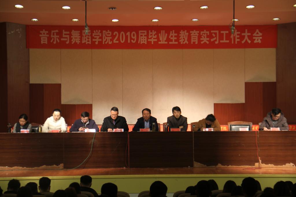 会议中,实践教学与创新创业教研室王升典老师对全体参加实习的209名师生做了详细的工作安排。院长李永教授语重心长地从组织纪律、思想作风、师德师风、教育教学、安全教育等七个方面对全体参加实习工作的全体师生提出了严格要求、勉励与鼓励。并预祝我院2019届全体师生在实习教学工作中取得佳绩,暖心聚心的精彩总结讲话赢得了全场师生的阵阵掌声。会后,198名毕业生将由指导老师带队分别赴枣庄市第十五中学(东校)、枣庄市第十五中学(西校)、枣庄市第十六中学、枣庄市艺术剧院、枣庄科技职业学院、滕州市第四实验小学、南京小银星艺术团七个实习基地全面开展实习教学工作。