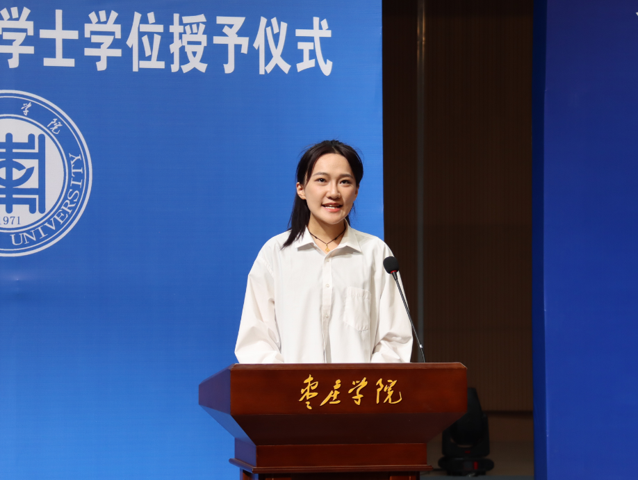 在校生代表王静怡祝愿所有师生:所遇皆良善,所行化坦途,愿梦想常青、担当常在、无愧于新时代。毕业生代表刘旭东、赵浚皓、黄雨婷、鹿梦宇发表毕业感言,纷纷表示:相逢又别离,归岸又离帆,感恩母校承载了欢笑,见证了成长,锻炼了意志与担当,感恩母校给予学子们登高望远的阶梯,能够有幸汲取师长博采众长的理论,能够有幸遇到志同道合的朋友,锐意进取,逐梦未来。