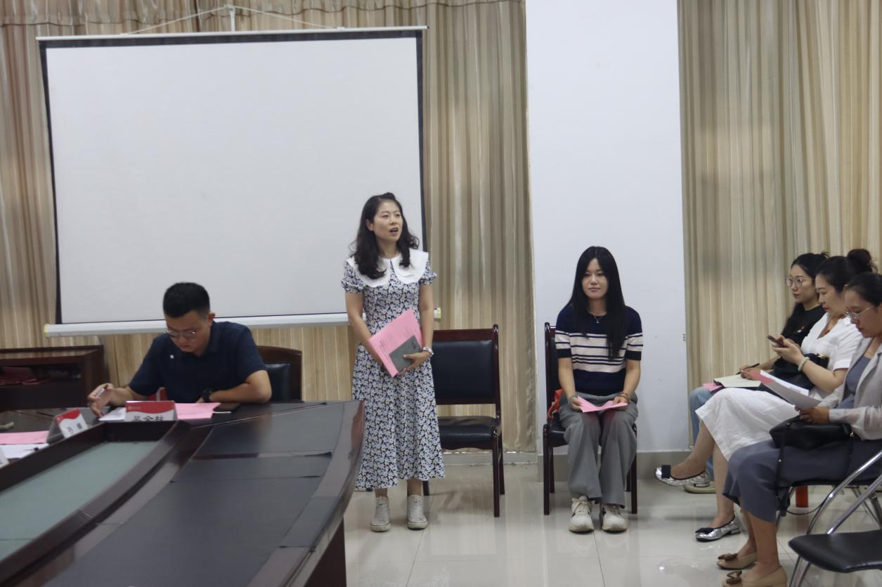 新进教师李越媛、史佳作自我介绍,对加入音舞大家庭表示荣幸与期待,表示将虚心向前辈学习,期望与全体同仁为学院事业贡献力量。