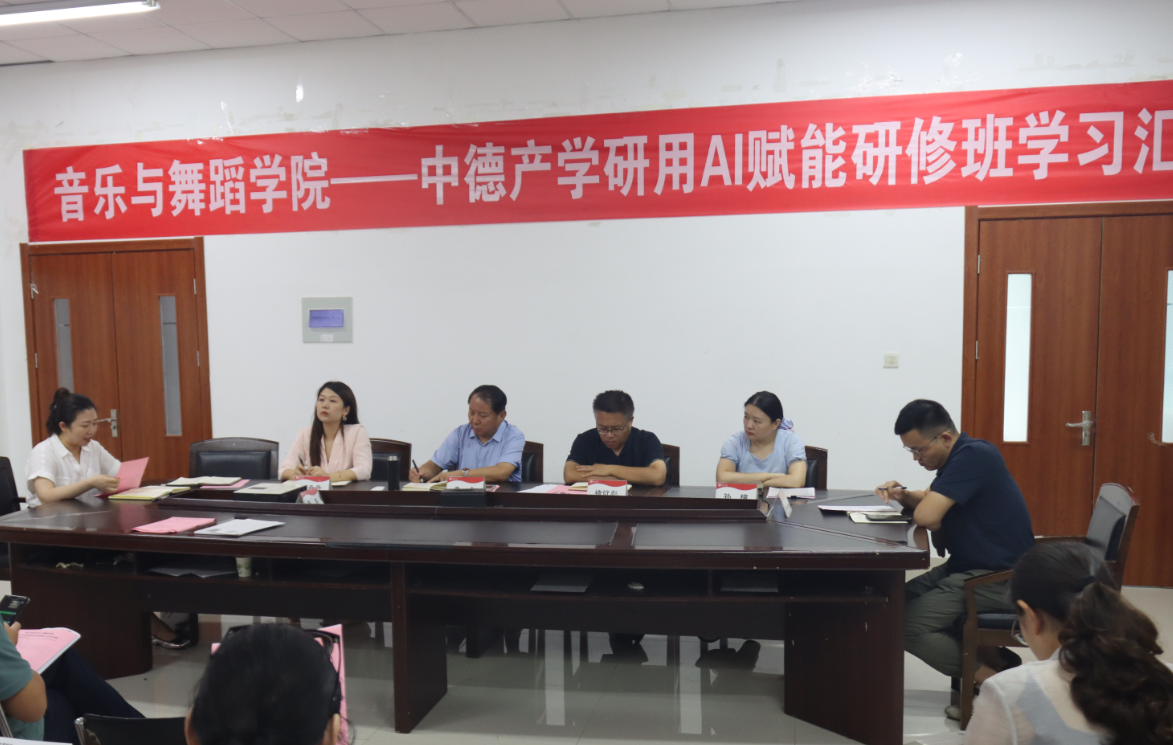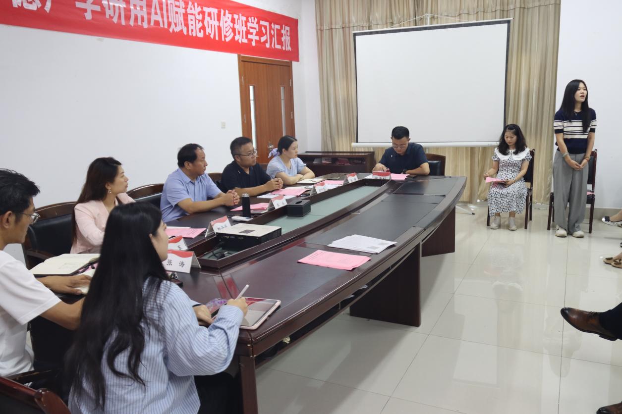 会议第二阶段,学院进行中德产学研用AI赋能研修班学习汇报,顾潇、石硕两位教师分享了本次学习的主要内容和心得体会,带领全体教师进行学习。