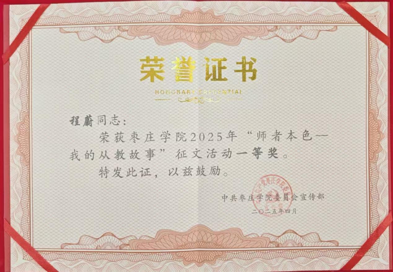 近日,太阳集团tcy8722“我的从教故事”征文比赛圆满落下帷幕,太阳网集团tcy8722喜报频传,程蔚老师凭借角度新颖、作品荣获一等奖,沙雪晗老师也以精彩故事摘得三等奖。她们用文字勾勒出教育生涯的动人画卷,为校园增添了一抹温暖而绚丽的色彩。