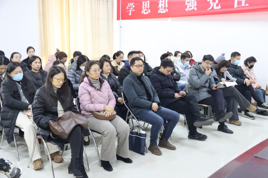 李永书记作最后总结,他对全体教师提出四点要求:一是要提高政治站位,在态度上旗帜鲜明,坚决贯彻落实上级要求,不折不扣完成校党委安排任务,;二是要统筹兼顾,在能力上自我革命、自我历练,克服畏难情绪,提升工作能力,平衡工作生活;三是令行禁止,在行动上,立说立行、立说立定、立说立合,上级有指示,我们有行动,确保党政工作时效推进,行稳致远;四是注重结果导向,以绩点结果论英雄成败。全体教师要心往一处想,劲往一处使,锚定目标,靶向发力,争取各项工作提前圆满完成,做到让学校党委满意,让学生家长满意,让社会大众满意。