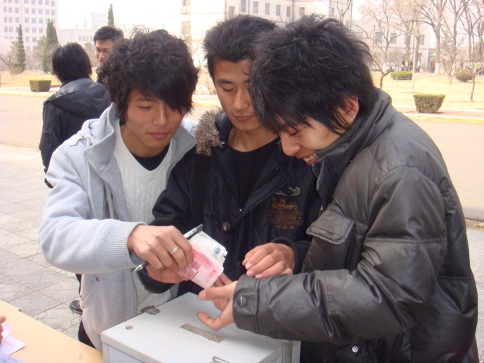 新学期伊始,音乐系的老师和同学们得知了丁建超出事的消息,纷纷到医院探望,吹奏他最喜欢的萨克斯,讲学校里发生的事情,希望能够唤醒他的意识。悲痛之余,在丁建超几个同班同学的发起下,音乐系举办了捐款活动,不到三天的时间,音乐系师生共捐款1.5万元。然而,对每天上千元的医疗费用而言,这些钱是微不足道的。音乐系的同学们决定在全校发起捐款活动,这一做法得到了系领导、院团委的大力支持,他们将丁建超的病情、照片能过QQ、校内网、宣传栏等方式传达给全院师生。3月24日,捐款活动在我院小广场进行,捐款同学络绎不绝,虽然当天阴雨绵绵,但每一份爱心充盈着我院,一百、五十、十元……有的同学甚至拿着存钱罐去捐款。音乐系的郭兰同学家庭条件并不好,每月的生活费仅为200元,当天地把自己仅有的196元钱全都捐了出来,着实感动了现场的同学。当然,丁建超的病情更牵动着学院每一位领导的心。3月26日,院党委副书记胡小林带着全校师生的关切和大家的爱心捐款,来到了医院看望了丁建超。音乐系党委书记王勤晓、副书记李永号召全系老师捐款,全力支持组织各种捐款活动,多次来到医院探望了解丁建超的病情。只要是有助于丁建超康复的事情,无论大小,他们都要尽最大力量帮助他。
