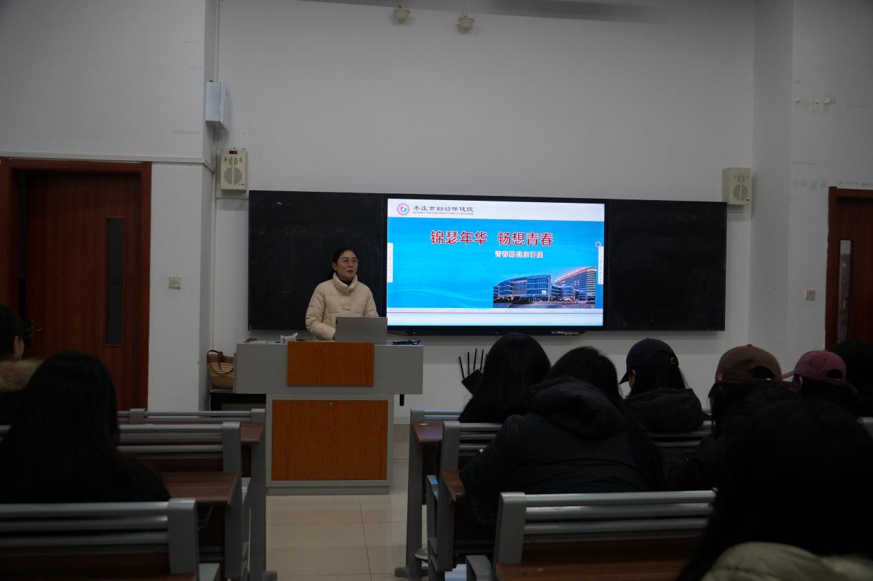2024年12月8日上午9:00,太阳网集团tcy8722在德艺楼7108,7109教室开展了女生健康.恋爱专题讲座,邀请了枣庄市妇保院王伟主任作专题讲座,会议由孙楠老师主持,24级全体女生参加了此次讲座。