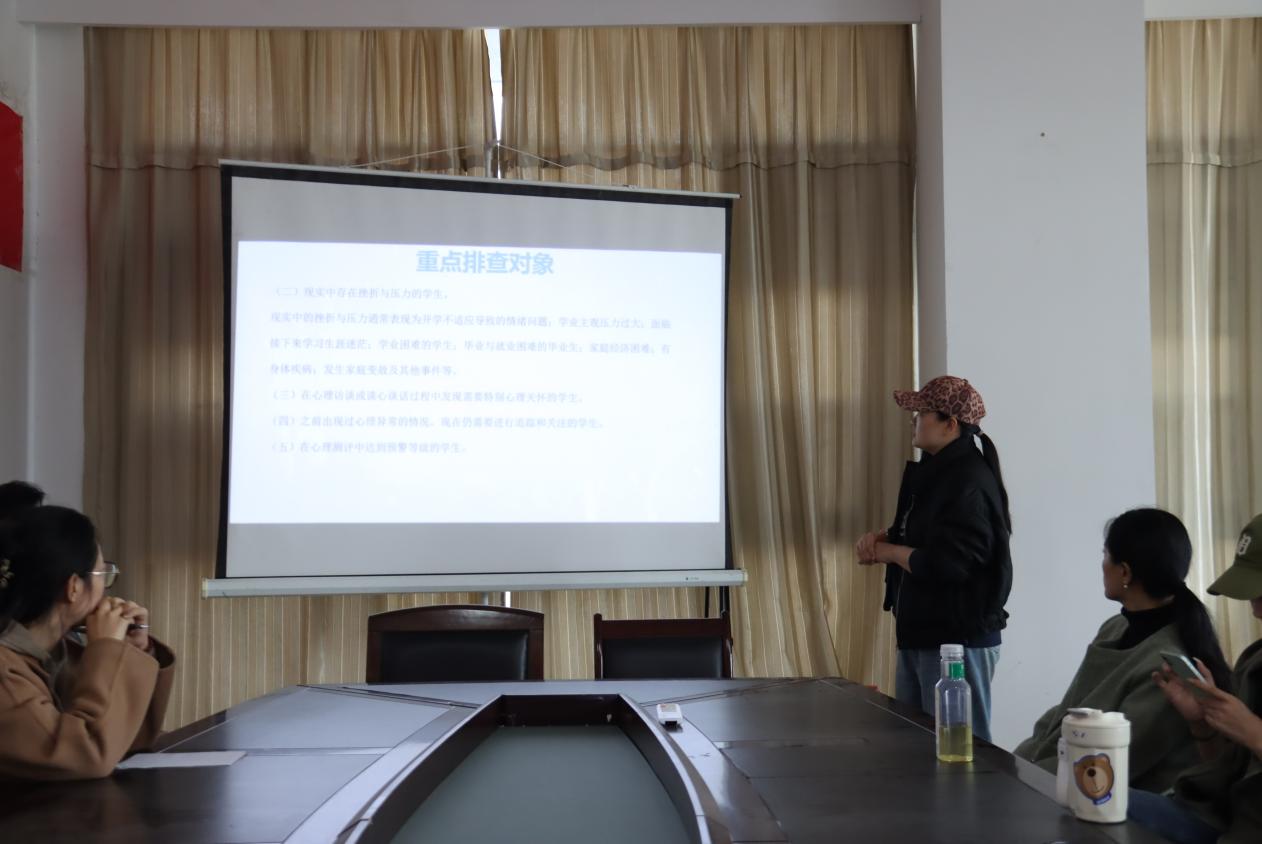 为进一步规范学生心理健康测评后续工作流程,提升心理危机预警与干预能力,4月3日下午,太阳网集团tcy8722在德艺楼7216会议室组织召开了心理健康测评专项工作培训会议。本次会议由孙楠老师主讲,学院辅导员、班主任参加。