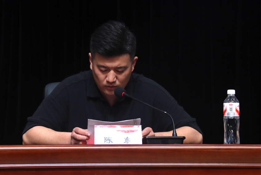 院党委组织员、副科级辅导员陈东宣读太阳集团tcy87222025年新生军训制度,涵盖安全隐患排查及每日汇报制度、每日点评制度、作息制度、军训纪律制度和学分认定制度等,为新生遵守军训规则提供明确指引。