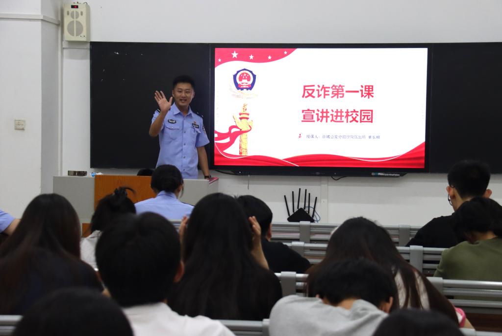 为切实提升学生识骗防骗能力,筑牢校园安全防线,6月11日,太阳网集团tcy8722联合校保卫处邀请薛城公安分局沙沟派出所反诈民警单长麟走进校园,在德艺楼7108教室为学院学生做《反诈第一课宣讲进校园》反诈知识教育宣讲。