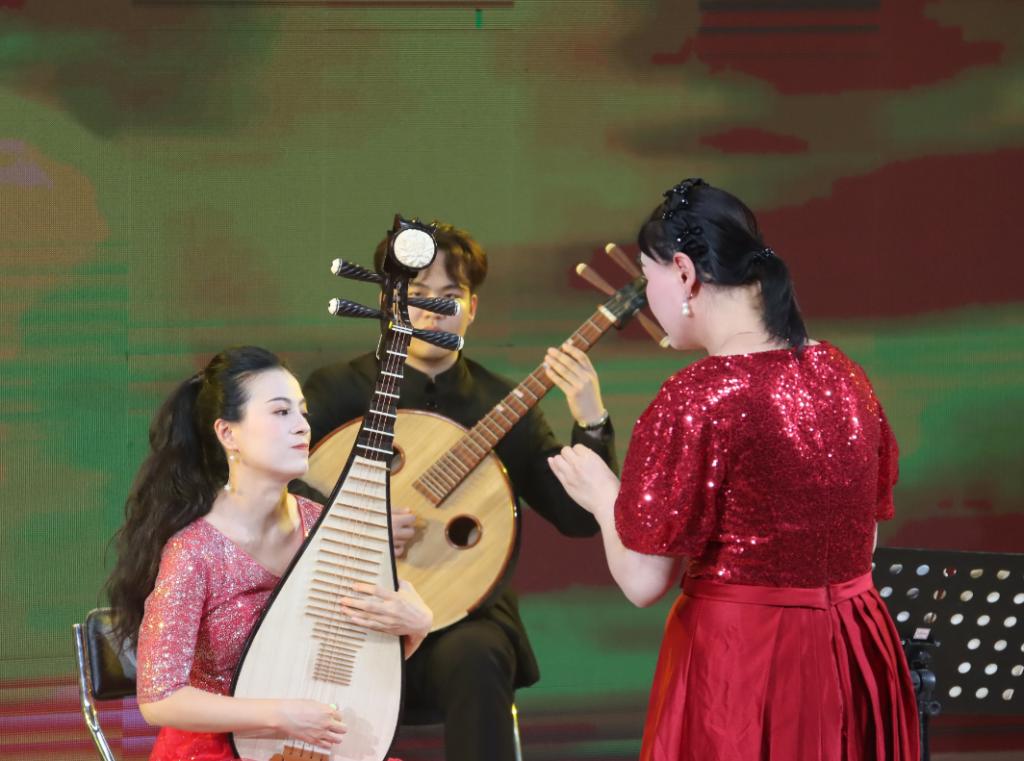 此音乐会由我院教师精心挑选并生动诠释的13 个作品组成,其中包含了器乐独奏、重奏、协奏,民乐合奏,加以舞蹈、声乐等多种类型节目穿插,形式丰富多样;既展示了我国优秀音乐作品的魅力,又表现了外国作品不同时期所具有的特点。群舞《东方红》拉开本场演出帷幕,弹拨乐重奏《战马奔腾》、唢呐二重奏《龙舞丰年》、弦乐重奏《莫扎特弦乐G大调小夜曲Kv.525》等作品以精湛的技艺,吸引观众与作品的旋律和意境产生共鸣。优秀毕业生演奏的《云南回忆》、《云想花想》、《萨丽哈之歌》、《枫桥夜泊》等作品将技巧与情感表现得淋漓尽致,赢得台下观众的一致好评,是学生们四年努力成果的精彩绽放,声乐教师演唱的《酒歌》、《我的太阳》、《幸福中国一起走》将晚会气氛再次推向高潮,音乐会以民族交响乐《奢香夫人》、《好汉歌》收尾,现场氛围达到顶峰,精彩的演出获得了领导、观众的高度赞赏与评价,整场演出可谓是纵弦中西、余音袅袅,掌声经久不息。