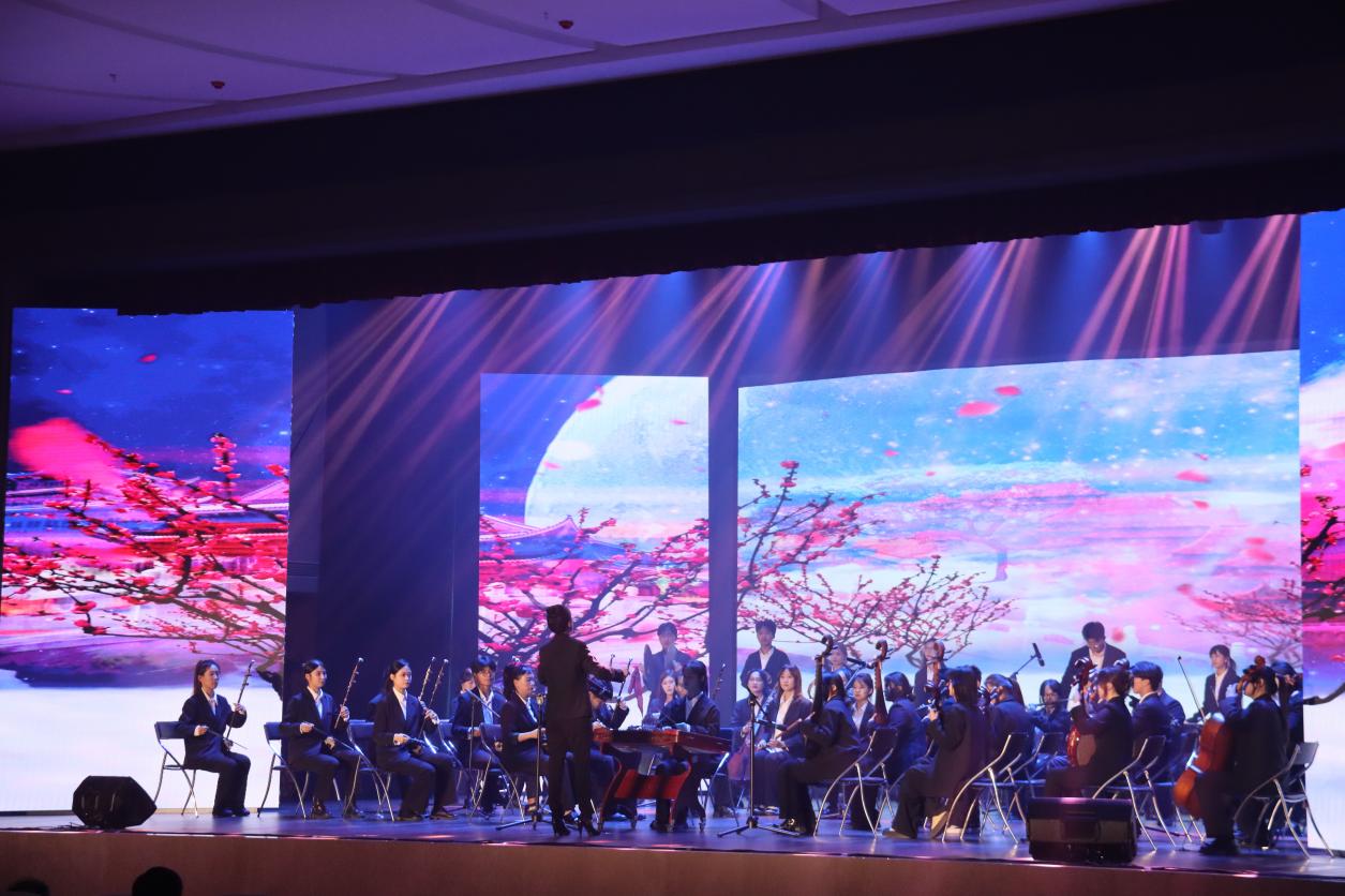 我院教师石硕、白娟、周婷婷、奚淑婷联袂出演现代民乐《象王行》,带给观众如梦如幻的情境感受,在齐鲁大地的温婉怀抱,枣庄如象王初醒,晨曦微露,金光洒满千年古韵,崛起坚韧不拔的脊梁