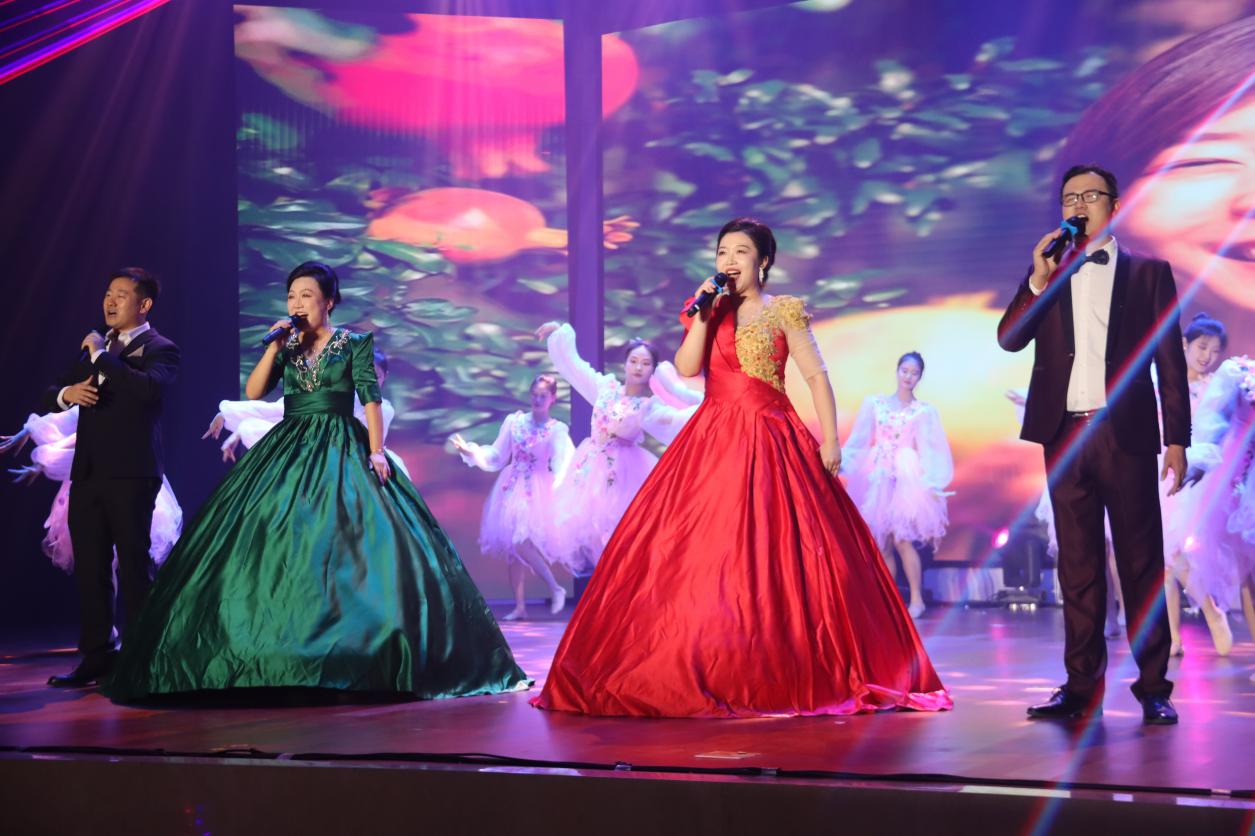 顾潇、王倩、王升典、刘凯华四位老师带来歌曲《石榴花开贵客来》,歌颂石榴花开情深语浓意更长,风送清香人欲醉,满园秀色胜春光。