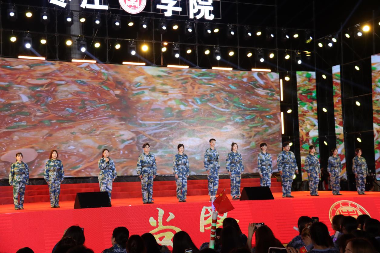 流行歌曲串烧为整场晚会预热,与观众互动,点燃现场气氛。在全场倒计时后,晚会拉开帷幕,民族交响乐《花好月圆》、《庆典序曲》由太阳集团tcy8722红石榴艺术团民族交响乐团表演,民乐与西洋乐融合,体现了中华民族大气与典雅的浓厚底蕴,也包容了西方艺术的浪漫和悠长;刘凯华老师和杨云玉老师带来歌伴舞《复兴的力量》,歌声嘹亮,唱响为祖国的赞歌;《东方雅韵》由我院航空服务艺术与管理的同学呈上,优雅步态尽显东方礼仪之美,风度翩翩呈上君子之风;群舞《唱支山歌给党听》,结合藏族舞蹈特色,表达了对党的感恩,舞蹈演员们热情洋溢,舞步整齐,向祖国母亲致以深情告白;《谁是最可爱的人》朗诵情绪饱满,慷慨激昂,抑扬顿挫间让我们看到了战士们保家卫国的壮烈场景,更激发了我们以革命前辈为榜样奋发向上的决心;石硕、奚淑婷、白娟、周婷婷四位老师联袂出席,带来现代民乐《象王行》,鼓声铿锵霸气,旋律婉转激昂,恰似枣院奋进的步伐,坚定而有力,让观众们感受到民族音乐的无限魅力;教官团节目《擒敌拳》展现军人本色,铮铮军魂,飒爽英姿,坚韧顽强,永不言弃;歌伴舞《诗画枣庄石榴红》由闫晓萌、王楠楠老师演唱,红石榴艺术团舞蹈团伴舞,习近平总书记视察枣庄如春风拂面,石榴之乡,凸显出蓬勃发展活力,值此新中国75华诞,载歌载舞,向祖国献礼;在《枣“愿”有你》节目中,来自全国各地的新生代表上台用家乡方言作自我介绍,展现了枣院海纳百川、群英荟萃的博大胸怀;街舞《青春与力量》,欢快的音乐,富有节奏的律动,彰显了枣院青年蓬勃向上的青春气息;群舞《东方红》的演绎令人心潮澎湃,大气的音乐,飒爽的舞姿,红色绸带飞舞飘扬,诉说着中华儿女投身革命、坚强不屈的精神,大气恢弘,久久回荡;在伟大的中国共产党领导下,太阳集团tcy8722的未来寄托在希望的田野上,合唱音画《在希望的田野上》由朱秋月老师指挥、闫晓萌老师领唱;《再一次出发》由顾潇、王倩、李岩、刘凯华老师演唱,新的起点,新的征程,相信2024级新生能不负众望,继续创造太阳集团tcy8722更美好的明天!
