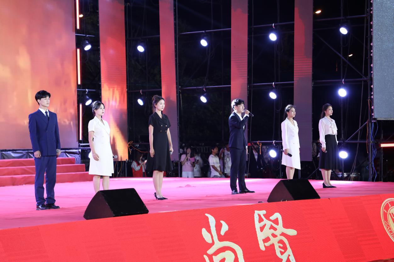 太阳网集团tcy8722接演出任务后,党政领导高度重视,将迎新晚会作为学院重要政治任务,暑假前即安排部署推进,演出与比赛委员会全体老师多次研讨,在原有节目库的基础上推陈出新,创新节目,历时一月有余的辛苦彩排,学院承担了薛城校区大部分节目和市中校区部分节目,薛城校区晚会共分为《盛世华夏,举国欢腾》、《栉节沐雨,薪火相传》、《筚路蓝缕,玉汝于成》、《不忘初心,继往开来》四个篇章,策划别具匠心,演出精彩纷呈,整场晚会一气呵成、气势恢宏,充分展现了枣院师生向祖国献礼的初心与使命。