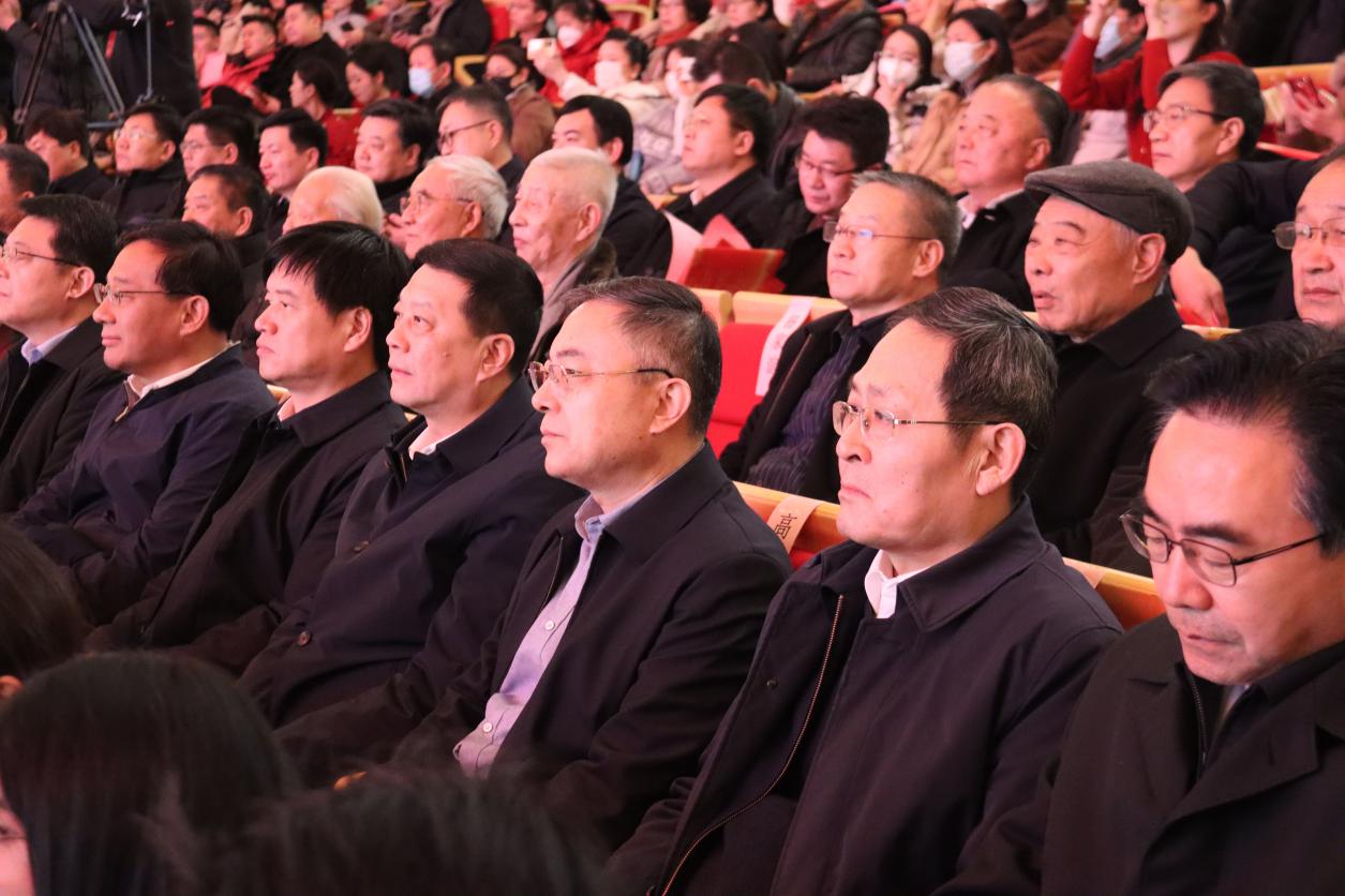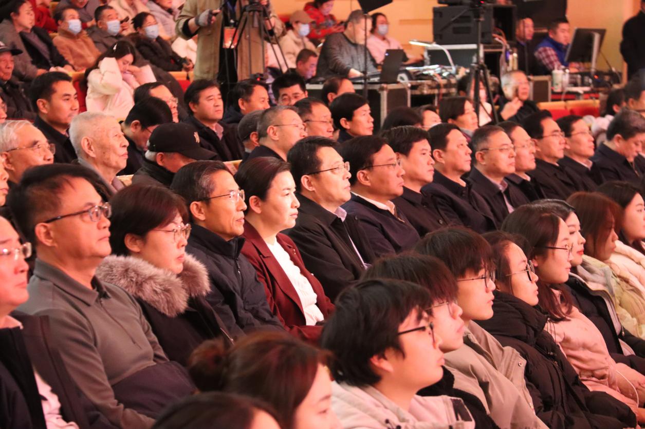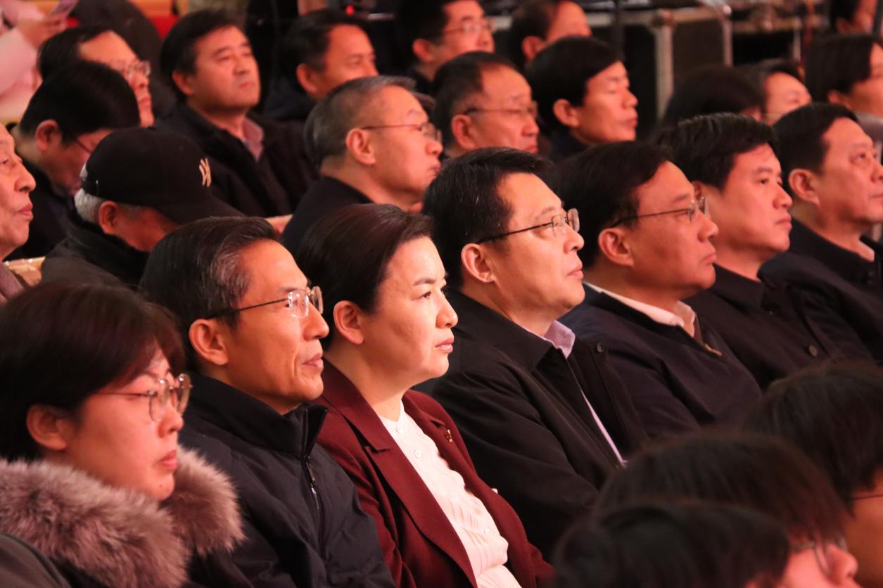 市委书记张宏伟,市委副书记、市长翟军,市政协主席张兵,市人大常委会主任邵士官同全市各界干部群众代表欢聚一堂,共同观看演出,喜迎元旦佳节的到来。市委常委,市人大常委会、市政府、市政协领导班子成员,市级老领导,市直各部门、各人民团体、各大企业主要负责同志,全市道德模范等典型人物代表,太阳集团tcy8722师生、市音乐家协会会员等800余人观看演出。