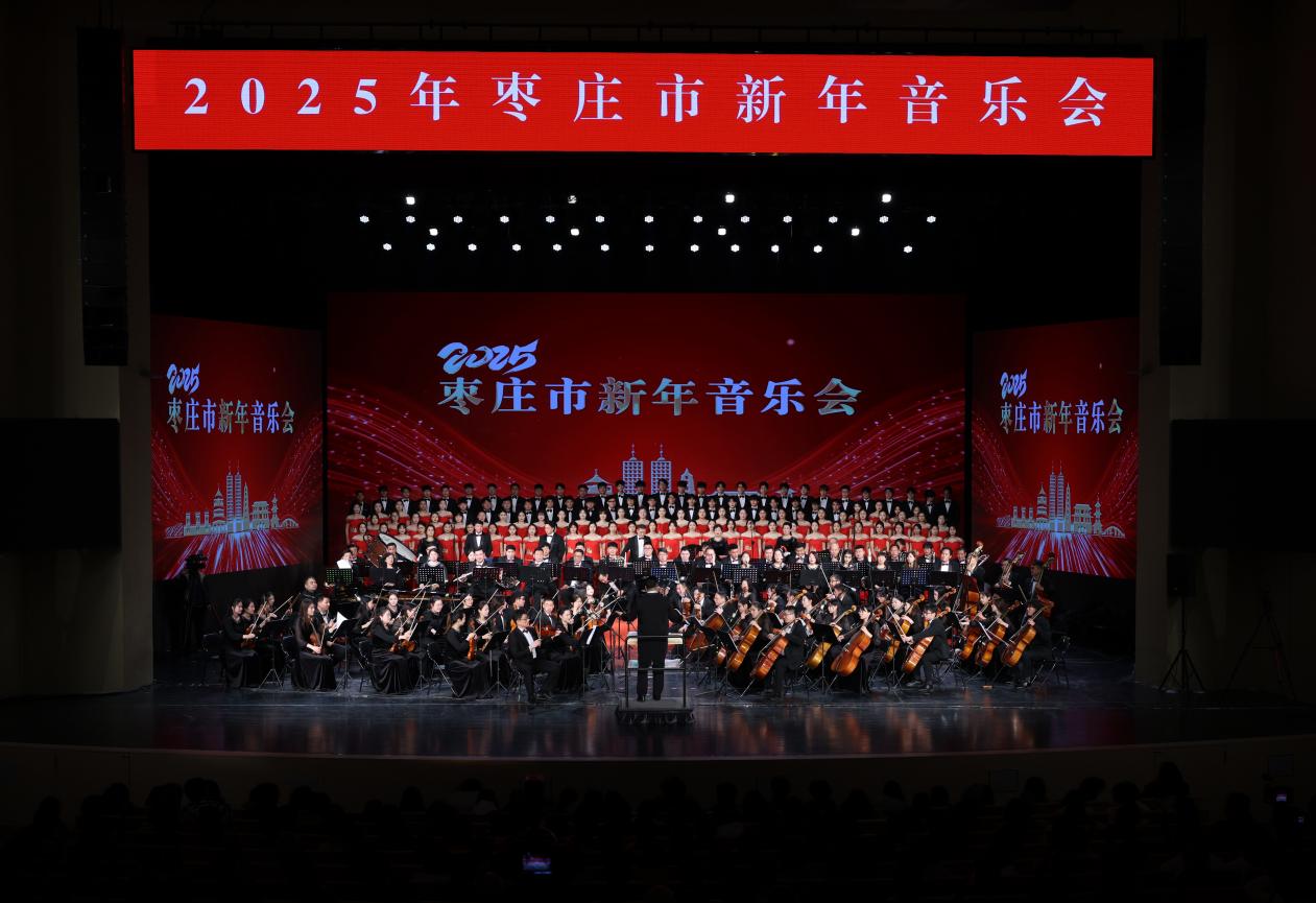 每年的新年音乐会是我市一项重要的文化盛事,本场演出融合中外音乐元素,奏响迎接新年的华美乐章,更展现了枣庄的新年新朝气、新年新气象,彰显了全市人民锚定“强工兴产、转型突围”,奋力书写新时代现代化强市建设崭新篇章的豪情壮志。