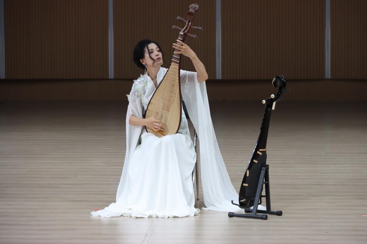 音乐会以经典古曲《瀛州古调》开场,周婷婷老师以精湛的技艺细腻诠释了古老曲调的韵味,引领观众步入传统琵琶的诗意世界。