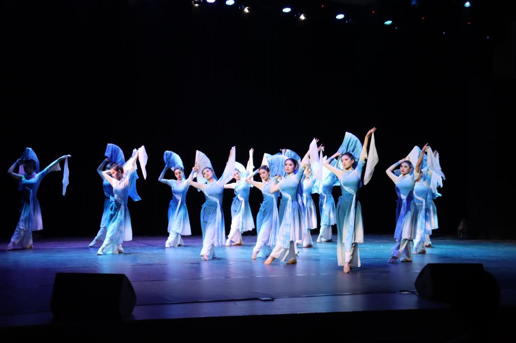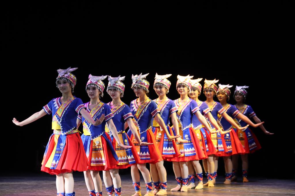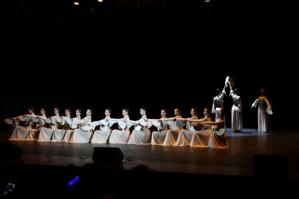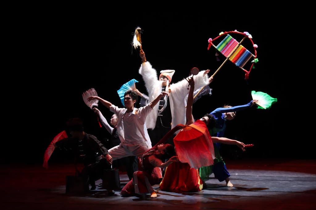 《舞韵东方》集中华民族舞蹈风格之大成,勾勒东方美学轮廓,彝族舞蹈热情奔放,踏地为节,朝鲜族舞蹈优雅含蓄,傣族舞柔美灵动,藏族舞甩袖踏步间尽显高原风情;古典舞技术技巧《龙吟竹梦间》,高难度技巧与舞蹈美感交融,跳转翻旋间,是学子们日复一日的功底沉淀,赢得阵阵惊叹。《看山看水看家乡》以质朴舞姿,抒发对故土的眷恋,展现农民沐浴在时代春风下幸福美满的生活状态和自信乐观的生活追求;《秋水遥》借舒缓韵律、悠远意境,带观众沉浸在秋水悠悠的诗意情境。
