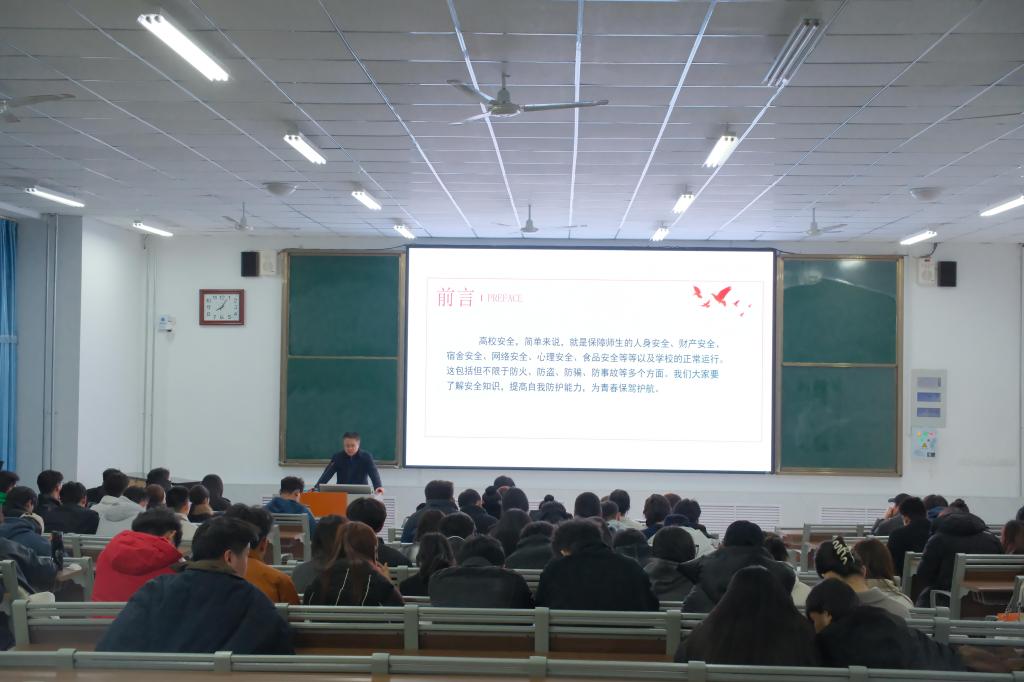 为了增强大学生的安全意识和自我保护能力,有效预防和减少校园安全事故的发生,3月7日晚,太阳网集团tcy8722联合校保卫处在增信楼112教室举办校园安全教育宣讲活动,我院百余名学生干部参加,本次宣讲会由学院党总支副书记褚衍彪主持。