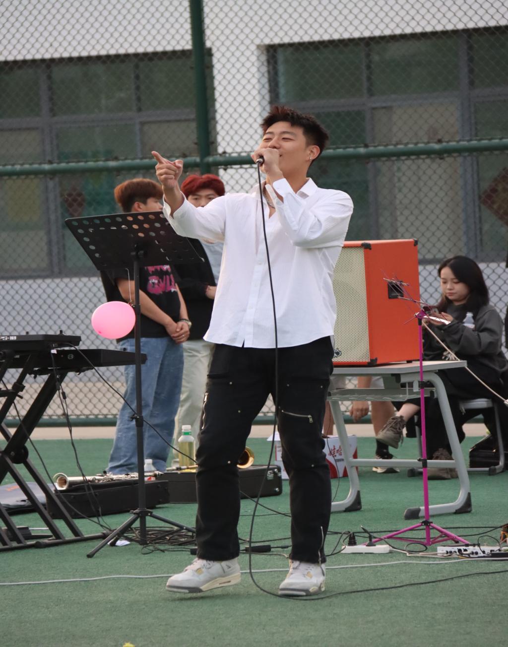 音乐节前期筹备工作细致且富有创意,选曲时充分考虑了音乐风格的多样性,力求满足不同观众的喜好。比巴卜乐队的周琪俊和汪子宸先后演绎了《石家庄人》和《想去海边》,用优美的旋律和动听的歌声拉开了序幕。玛卡巴卡乐队带来的的歌曲《身骑白马》充满激情,《唯一》和《空心》把音乐节的氛围推向了音乐节的高潮。此外,其他学院的学生也展现了各自的才华:外国语学院的董凯伦深情演绎了《Astronaut in the ocean》,大学生艺术团的王小涵演唱了《孤独颂歌》,旅游与资源管理学院、马克思主义学院的郭梓涵和李红坤合作演绎了《最后一页》《逆光》。观众们沉浸在音乐的海洋中,随着音乐挥舞手中的荧光棒,不时发出热烈的掌声和欢呼声。
