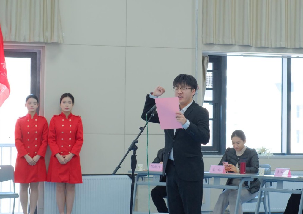 大会在雄壮的国歌声中拉开帷幕,团总支书记刘丹丹宣读2024届学生会·大学生艺术团干部任命名单,所有领导老师为新任学生干部颁发聘书,2023届学生干部代表与新任学生干部完成交接,并举行授旗仪式。2023届学生会主席朱方晓发表卸任感言,感谢领导老师的栽培与厚爱,感谢所有同学的支持与配合,2024届学生会主席胡顺翔带领全体新任学生干部宣誓,誓言铿锵有力,号召大家为建设团结友爱、朝气蓬勃管理有序的太阳网集团tcy8722奋力前行。副处级组织员肖玉刚老师为新一届学生会送上贺词并提出希望与要求。