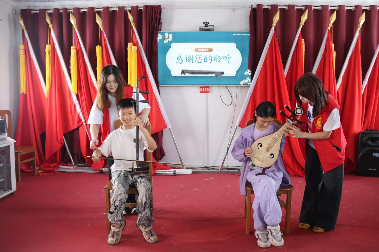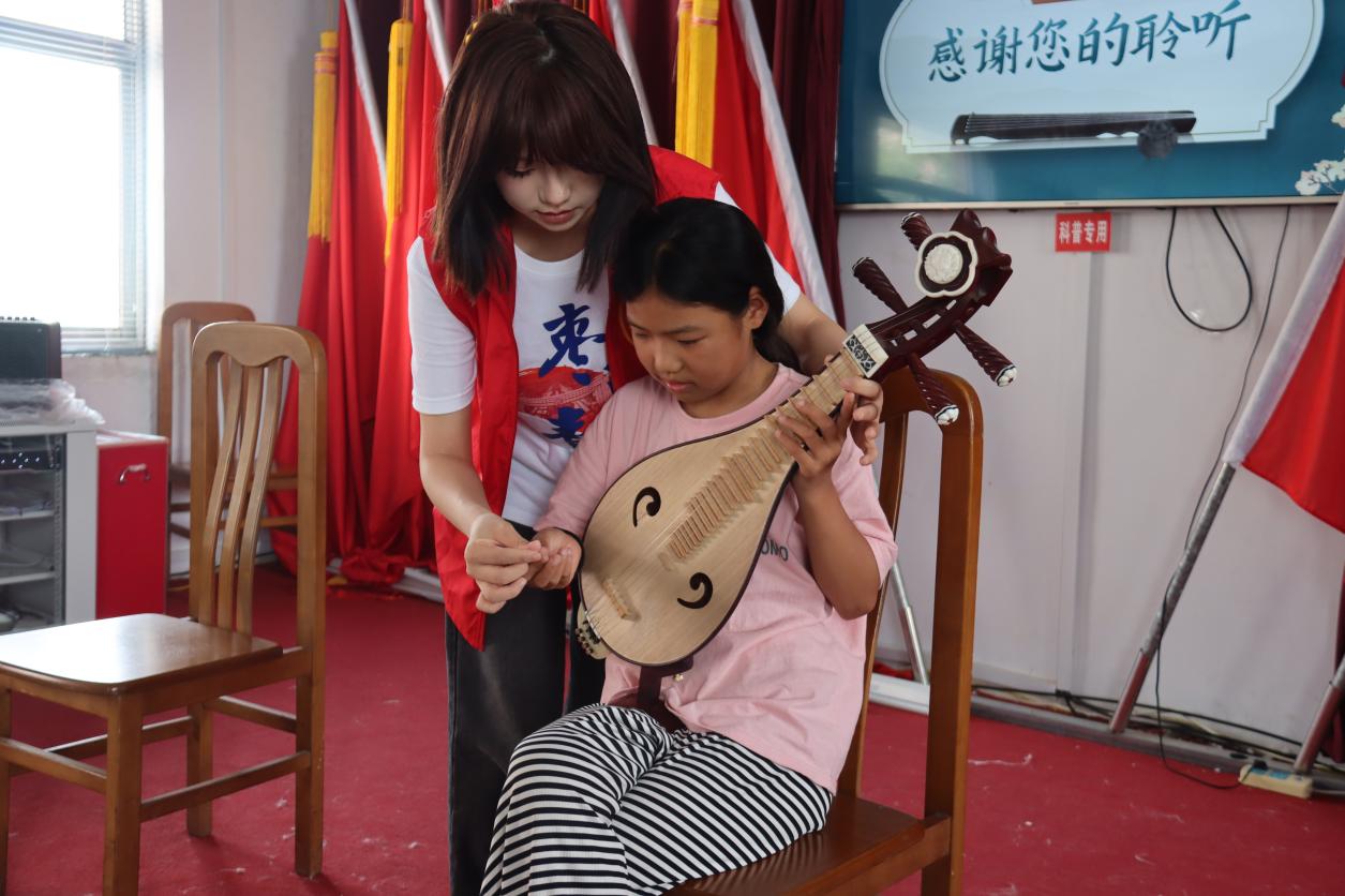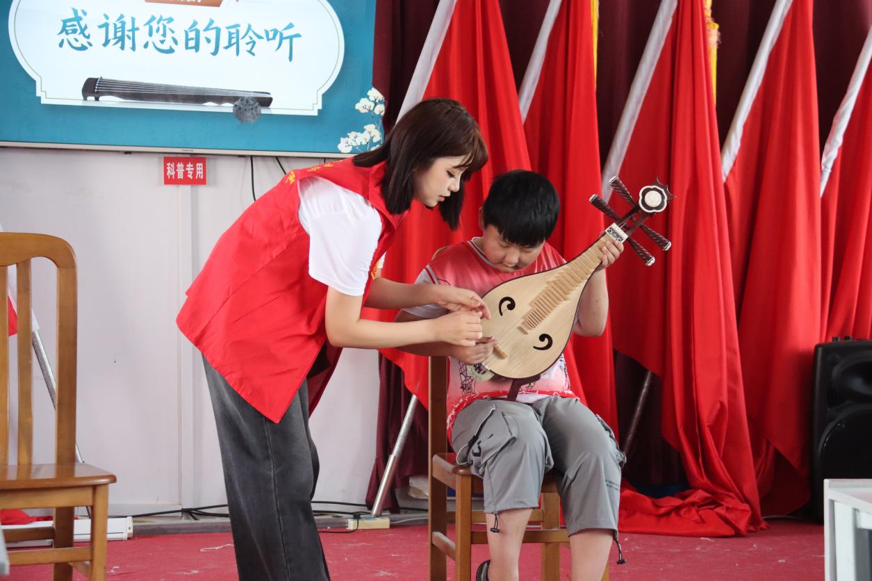在文艺演出后,志愿者为村里的孩子们准备了一堂公益音乐课。此次音乐课堂主要是为传承传统音乐文化,特别是枣庄的传统戏曲柳琴戏。志愿者们首先向孩子们介绍了柳琴戏的历史渊源、发展脉络以及独特的艺术魅力。孩子们聚精会神地聆听,志愿者们还采用了互动式教学方法,孩子们尝试弹奏柳琴,感受着传统乐器的独特魅力。