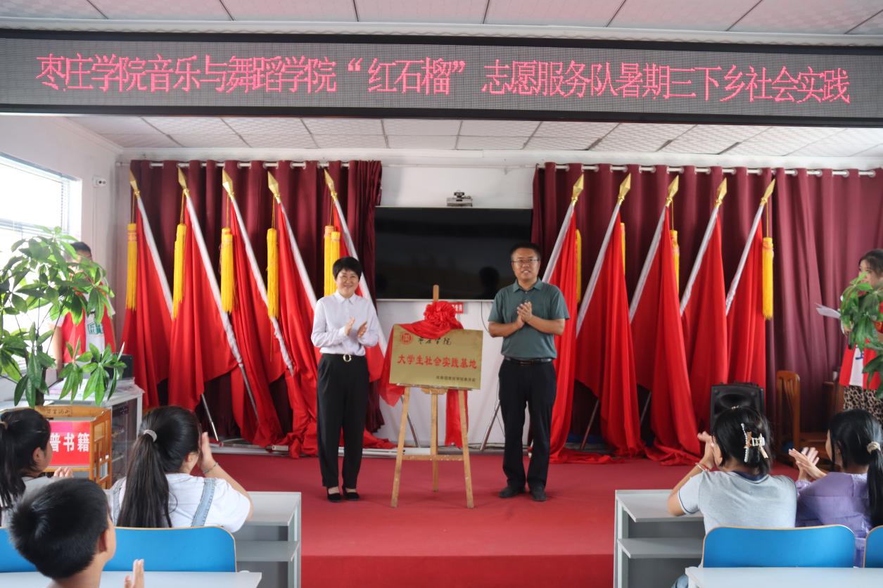 活动首先举行太阳网集团tcy8722与枣庄市市中区孟庄镇共建大学生社会实践基地揭牌仪式,太阳网集团tcy8722党委副书记褚衍彪和孟庄镇党委委员伊宁主任共同为大学生社会实践基地揭牌。