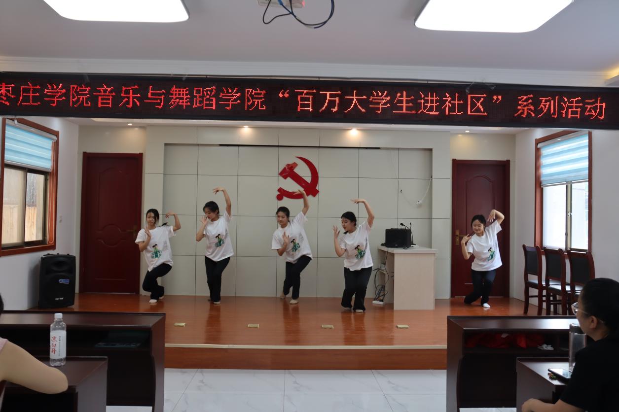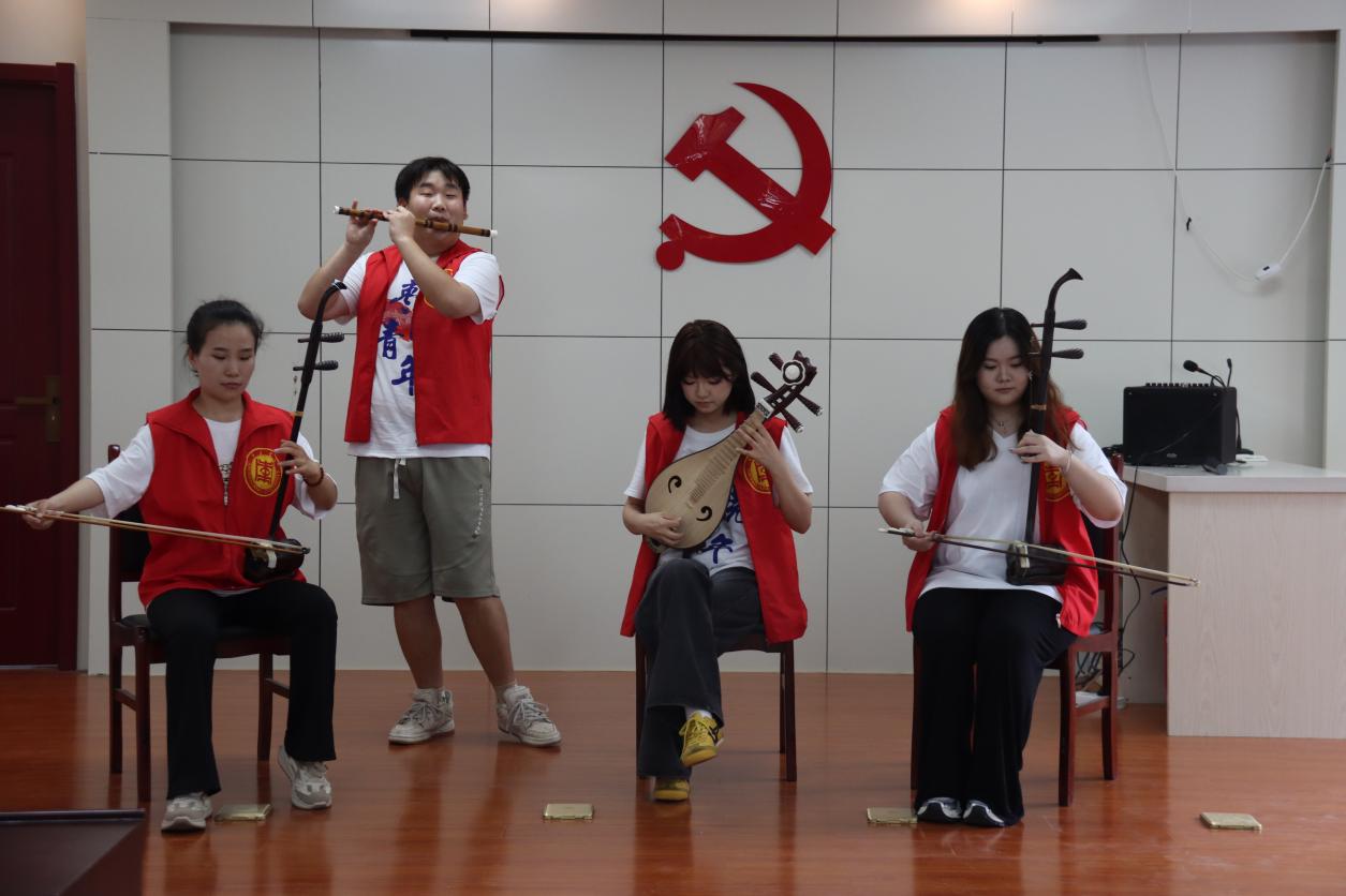 志愿者们为北龙头社区的居民们准备了形式多样的演出。美声独唱《爱永在》蕴含了深厚的家国情怀以及坚定不移的理想信念,男声合唱《骄傲的少年》、民乐独奏《家乡的歌》、民乐合奏《塔吉克舞曲》以及美声独唱《我和我的祖国》引发了现场观众的情感共鸣,舞蹈《花儿》、《雀之灵》,舞者们用婀娜多姿的舞姿展现了独特的民族风情,将现场气氛推向了高潮。活动接近尾声时,全体参演学生共同献上了小合唱《弹起我心爱的土琵琶》,演出圆满落下帷幕。