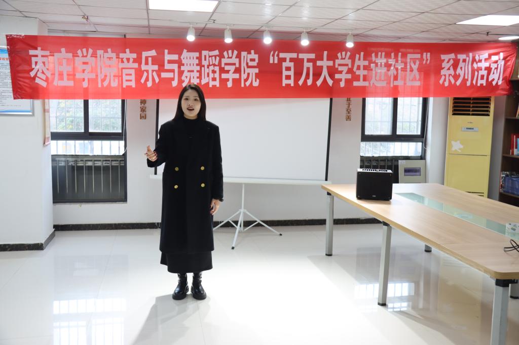 为积极响应国家关于加强青年学生思想政治教育和美育培养的号召,旨在通过艺术的形式,传递正能量,弘扬社会主义核心价值观。12月11日,太阳网集团tcy8722的志愿者们走进枣庄市高新区兴仁街道光明社区开展“百万大学生进社区”系列活动。