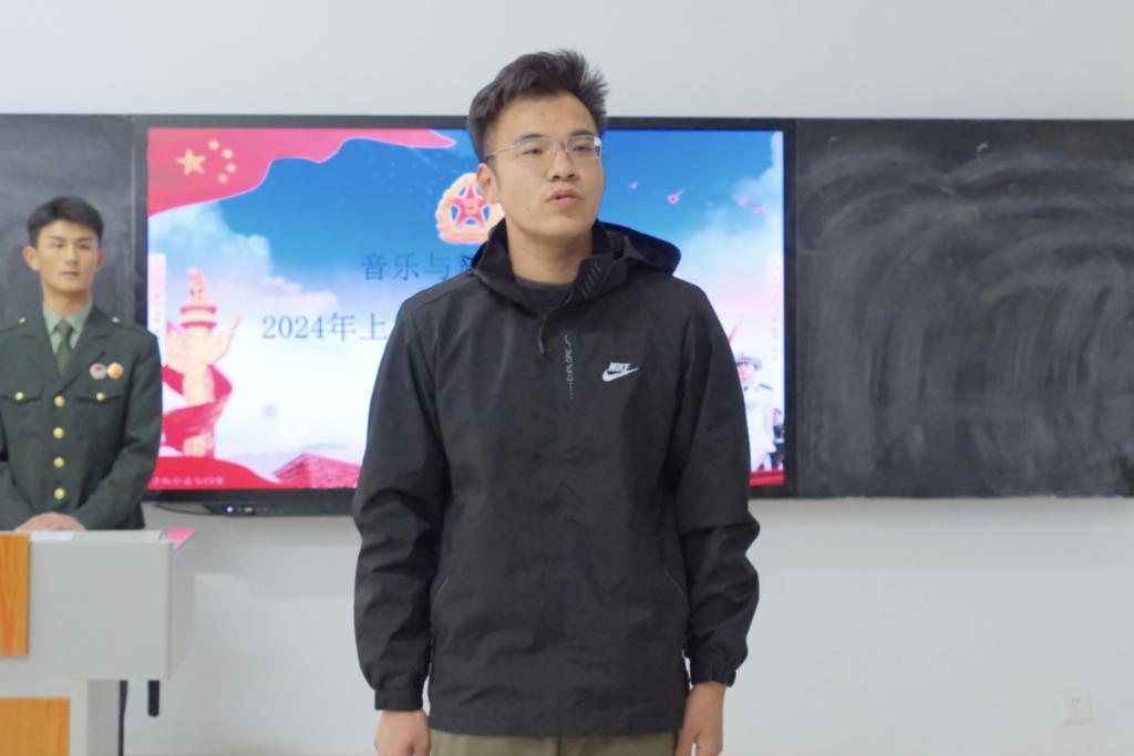 首先由周宇宸宣讲征兵政策,从在校生和毕业生两个不同的方面切入,为同学们介绍征兵入伍的要求、报名方式和注意事项,随后又对报名参军的基本流程、保留学籍与学费补偿以及优惠政策的情况进行了详细介绍,同时希望同学们能积极的响应国家号召,踊跃投身军营。随后杜炳政从部队的生活、学习以及升学的经历两个方面进行了分享,其他退役士兵分享的话语中所描述的军旅生涯引起了同学们的向往与想象,增强了同学们对于参军为国效力的期待。