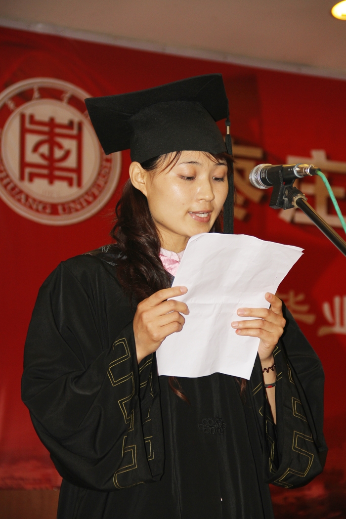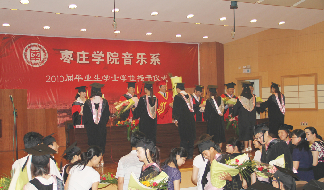 在庄严的国歌声中,音乐系2010届毕业生学士学位授予仪式正式开始。仪式上,系党总支副书记、副主任李永发表了热情洋溢的讲话,向被授予学士学位的同学们表示祝贺,并对毕业生提出了三点希望,一是继续努力奋斗,在新的岗位上建功立业。二是树立终身学习的理念,在新的人生征程中实现全新的跨越。三是永远心怀母校,与母校携手并肩共创辉煌。最后题诗《清平乐 欢送》一首献给全体毕业生,祝福同学们前程似锦、一路顺风!