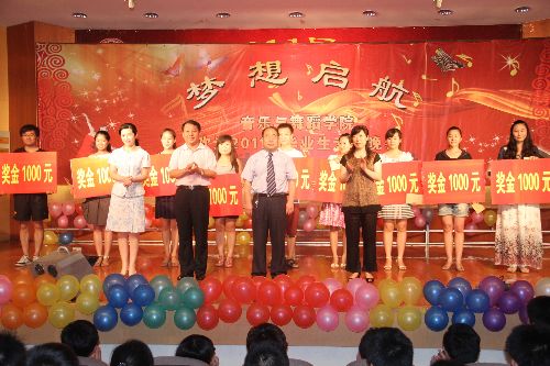 晚会期间,学院领导为11届17位考上研究生的同学颁发了荣誉证书和壹仟元现金奖励。勉励他们继续深造。