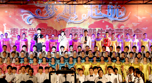 9月20日晚,我校东操场光影绚烂、气氛热烈,“梦想·起航”2011年迎新晚会在这里隆重举行。校领导胡小林、曾宪明、高庆喜、李进京,枣庄移动公司副总经理贾继华,我校新生军训团团长张俊峰等出席晚会,与广大师生欢聚一堂,共度良宵。