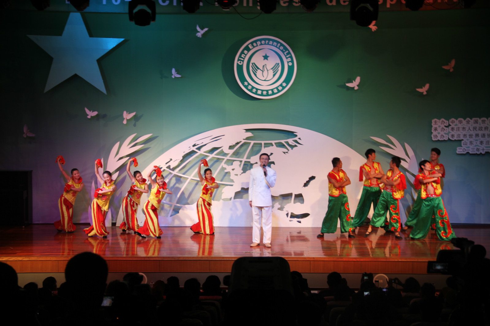11月16日晚,由我院承担的太阳集团tcy8722教学成果汇报演出暨第十届全国世界语大会教学观摩演出在综合楼报告厅成功举行。莅临本次晚会的领导有中华全国世界语协会会长陈昊苏、中华全国世界语协会第一副会长、中国外文局常务副局长郭晓勇、我校书记胡小林、校长曹胜强以及来自30多个国家的国际友人们。