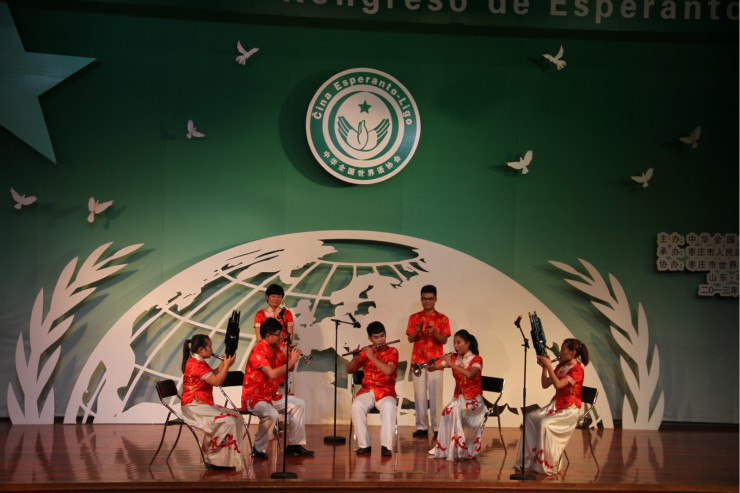 伴随着青年合唱团的清脆歌声,“春来了,春来了,多么美好,多么美好”晚会拉开序幕。第二个节目是由青年舞蹈团带来的群舞《碧荷扮绿微山湖》,引得外国友人赞叹声不绝于耳。深情感人的男声独唱《有一个美丽的传说》赢得观众们的阵阵掌声。接着器乐合奏《巅峰》更是将本场晚会的气氛推向了最高潮,西洋乐器和民族器乐的组合,演员们娴熟的技巧和具有表现力的演出让观众无不沉浸在中外合璧的美好情境中。民族交响乐团带来的《花好月圆》、《步步高》成为了今晚汇演的一大亮点。本次汇演的每一个节目都深深触动着台下的观众,一次次把他们带到鲁南文化的诗情画意中。晚会在青年交响乐团演奏的《拉德茨基进行曲》中完美落幕。此次晚会秉承新机遇、新平台、新追求的主题,将世界语文化成功的渗透到每一个人心里。