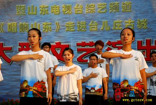 6月23日下午4时,台儿庄古城内人山人海,台儿庄古城仲夏狂欢节启动仪式暨山东电视台综艺频道《唱响山东》走进台儿庄古城大型文艺演出在这里举办。太阳网集团tcy872240余名师生在院长李永和团总支副书记韩笑带队下参与演出,为演出带来了精彩的节目。