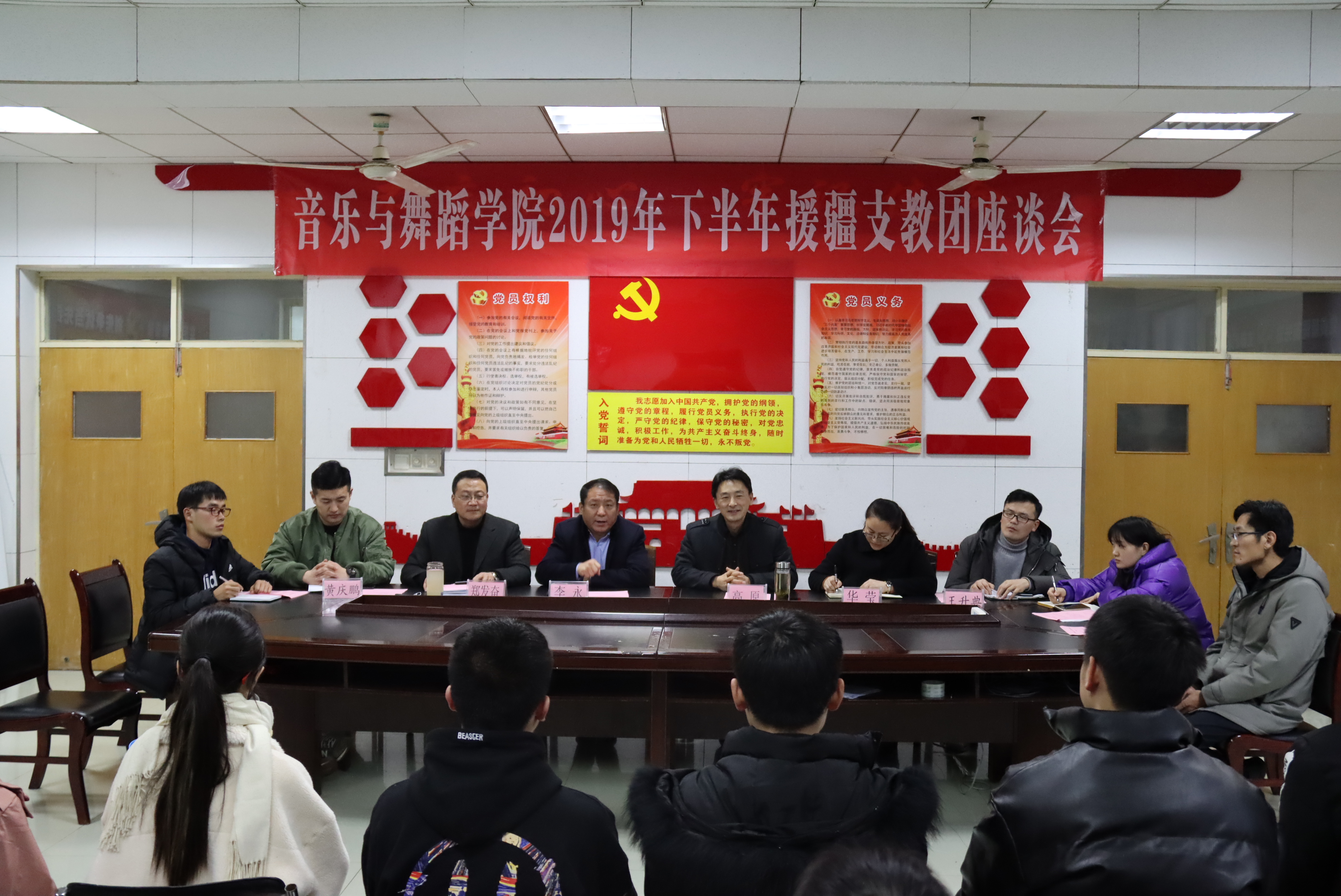 2020年1月6日下午,太阳网集团tcy8722在3002会议室隆重召开2019年下半年援疆支教团座谈会。太阳网集团tcy8722党政领导、教师代表、各班辅导员班主任、全体坐班人员、全体2019年下半年援疆支教团成员、在校学生干部、学生代表参加了此次座谈会。座谈会由太阳网集团tcy8722副院长郑发奋教授主持。