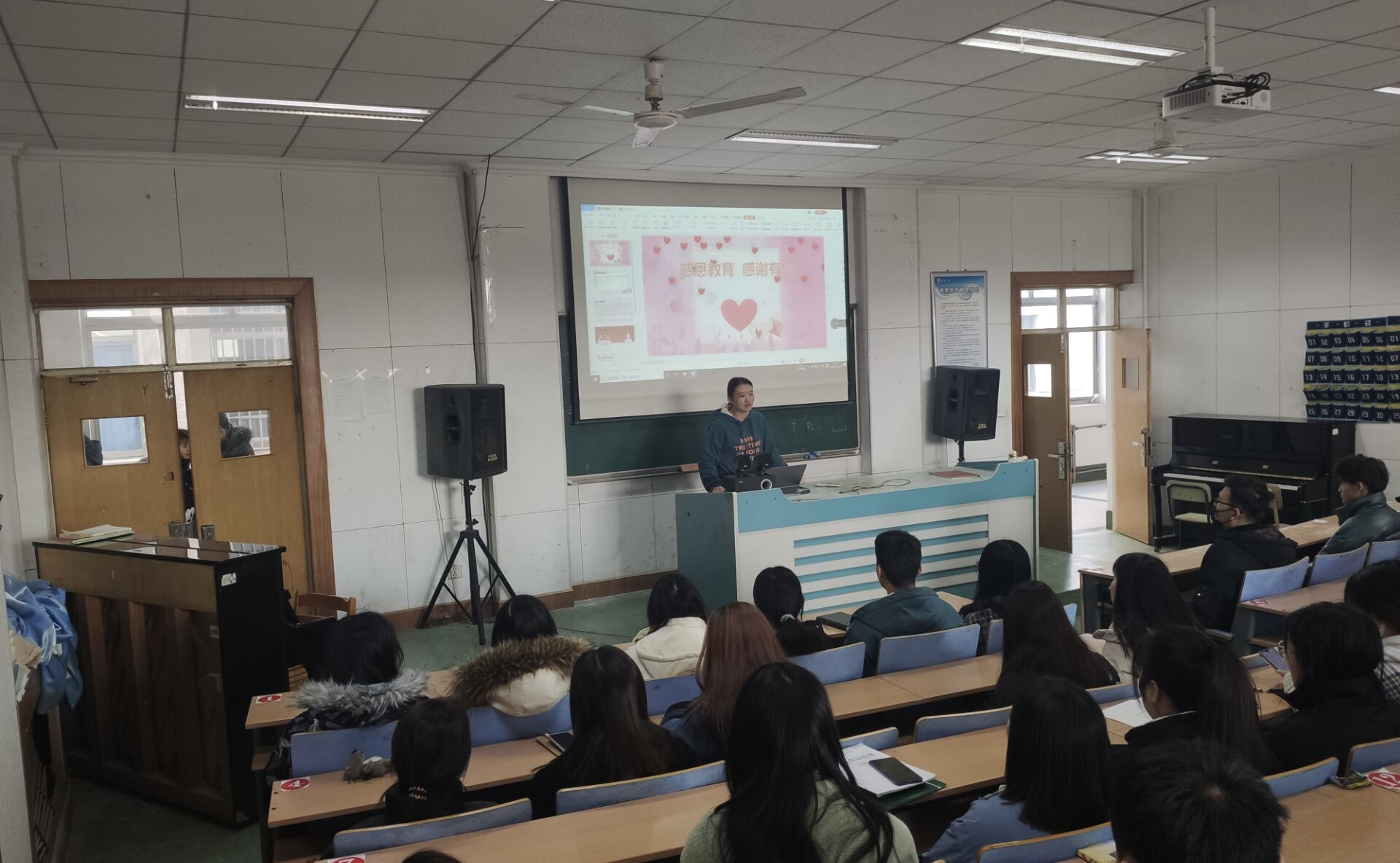 及感恩教育主题宣讲会,辅导员孙楠老师做了政策宣讲,全体学生参加了此次会议。