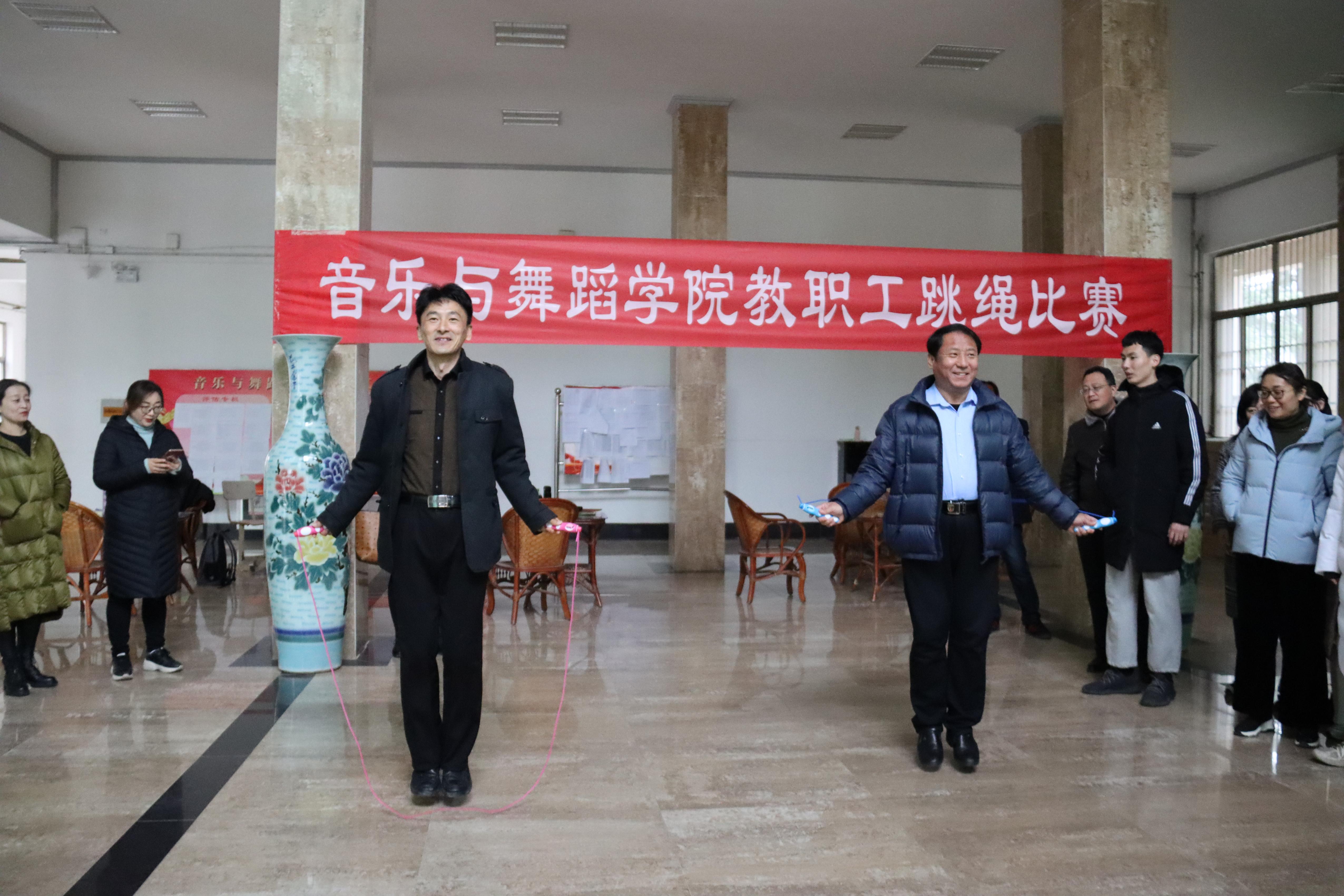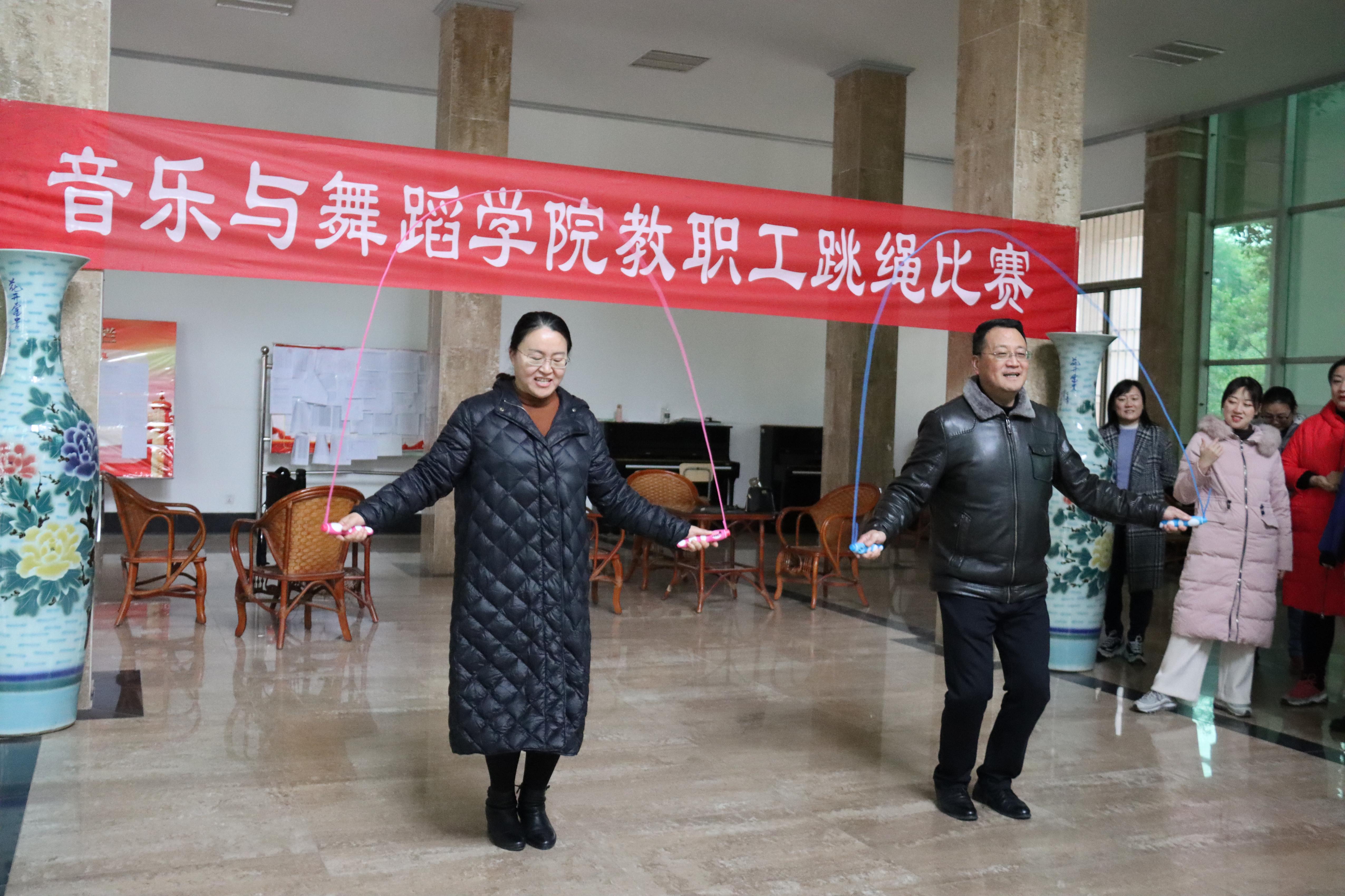 音乐大厅内人头攒动,掌声不断。比赛以单人跳方式进行,按一分钟内各组跳绳次数多少排名。书记院长率先开展了第一轮比拼,拉开了本次跳绳比赛的序幕,他们矫健的身姿,在绳子中间轻快的跃动,把跳绳比赛推向了高潮。老师们一字排开,个个憋足了劲儿,哨声一响,一条条跳绳立刻舞起了风声,个个都表现出了不凡的实力。比赛中,激情与紧张同在,友谊与竞争共存,大家个个情绪高涨,比赛场面欢快激烈,不时引发阵阵喝彩。 拉拉队员更是不甘示弱,加油声、呐喊声、欢笑声此起彼伏,一阵比一阵响。整个音乐学院呈现出一片阳光、快乐、健康、向上的景象。