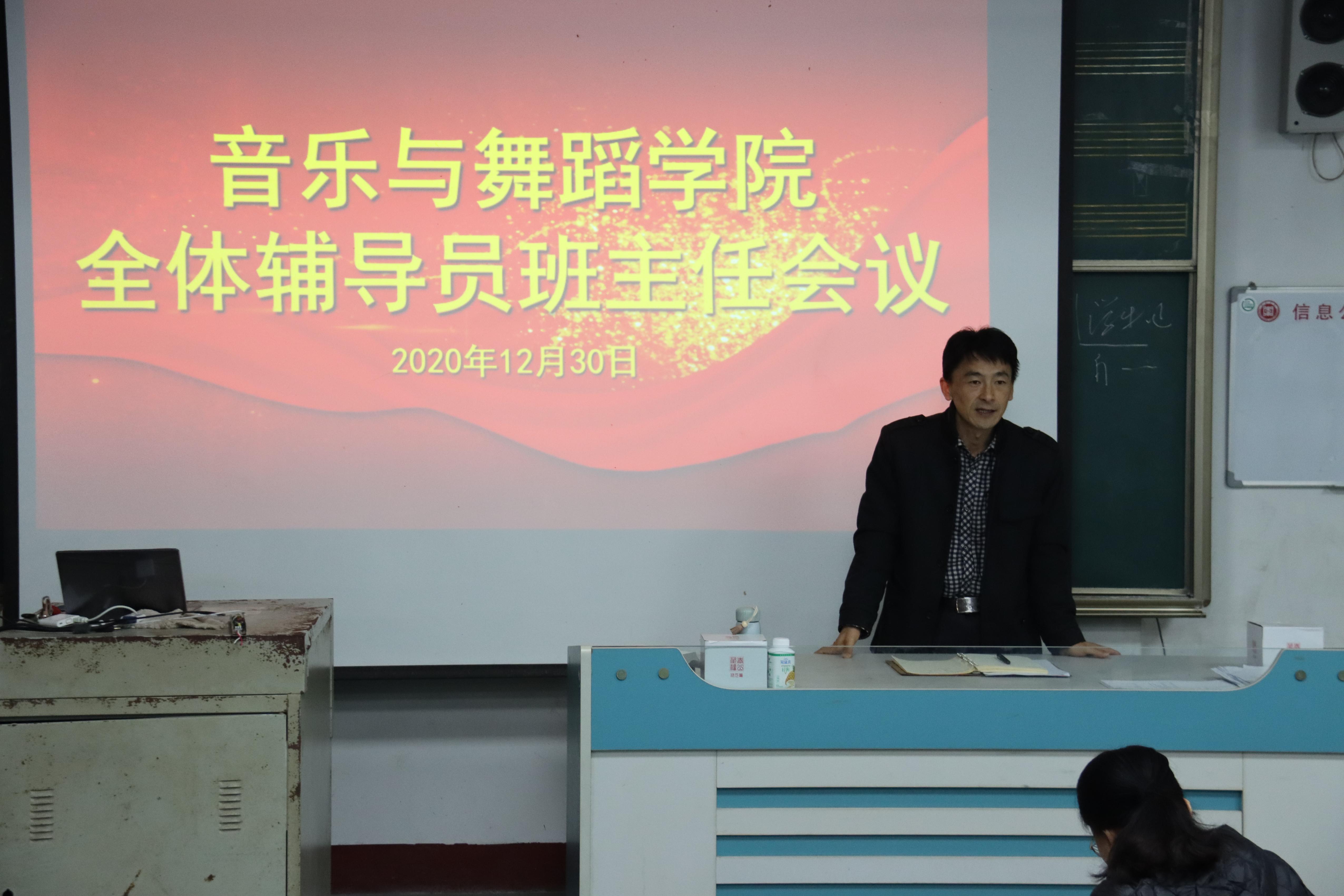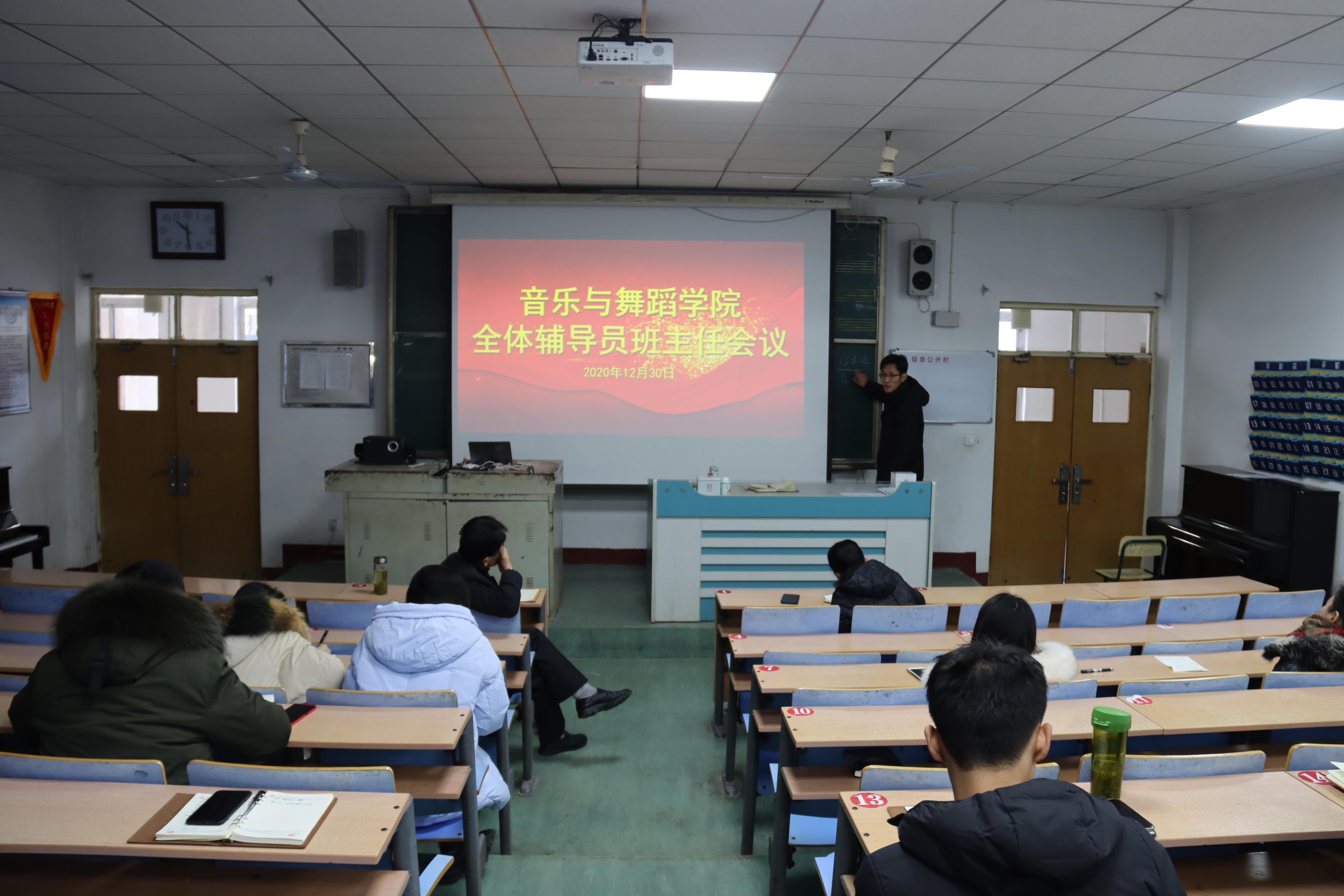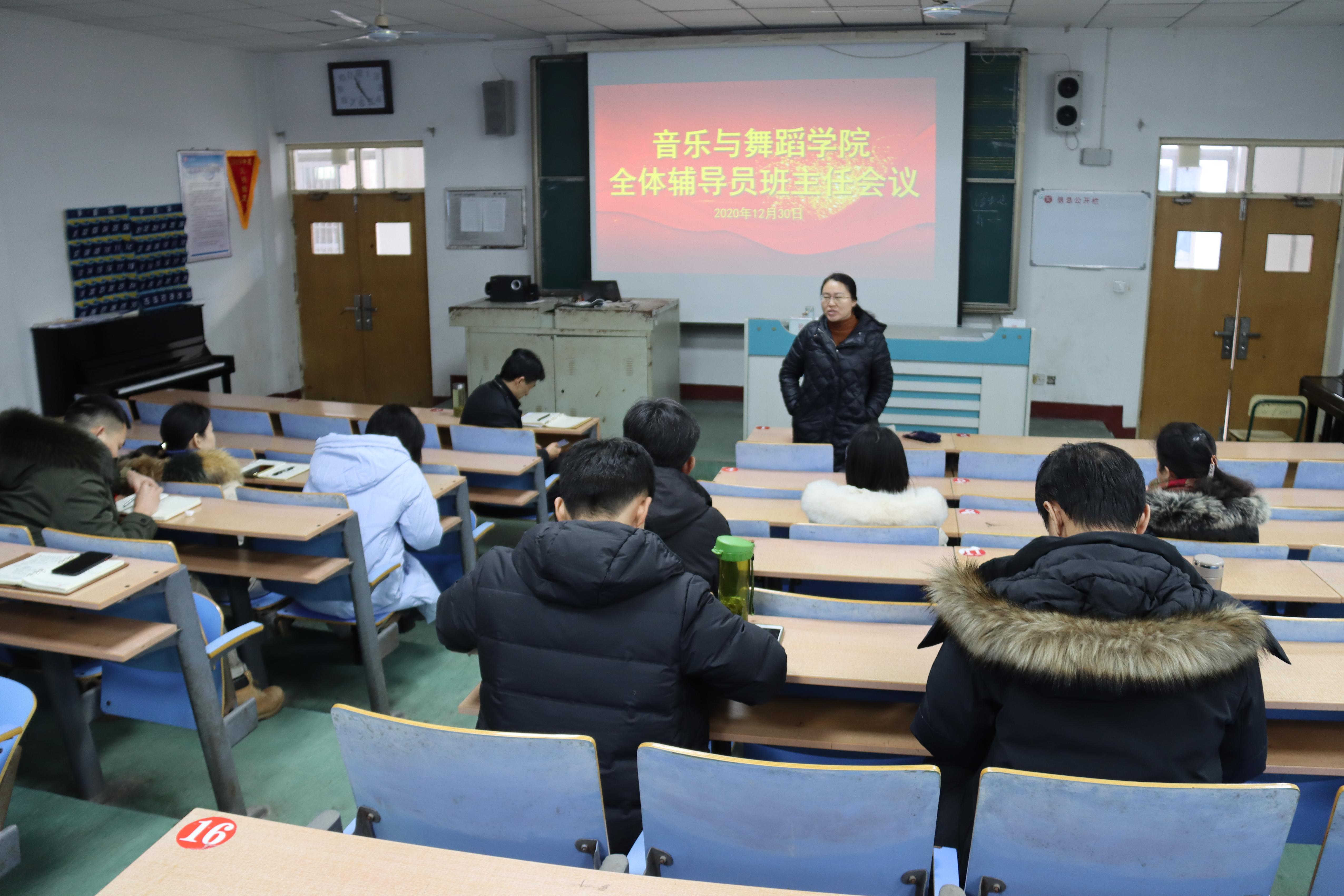 2020年12月28日,太阳网集团tcy8722召开全体辅导员班主任会议进行“抓班会促管理”班会讲评活动,我院全体辅导员班主任参加了本次会议,会议由院党总支书记高原主持。