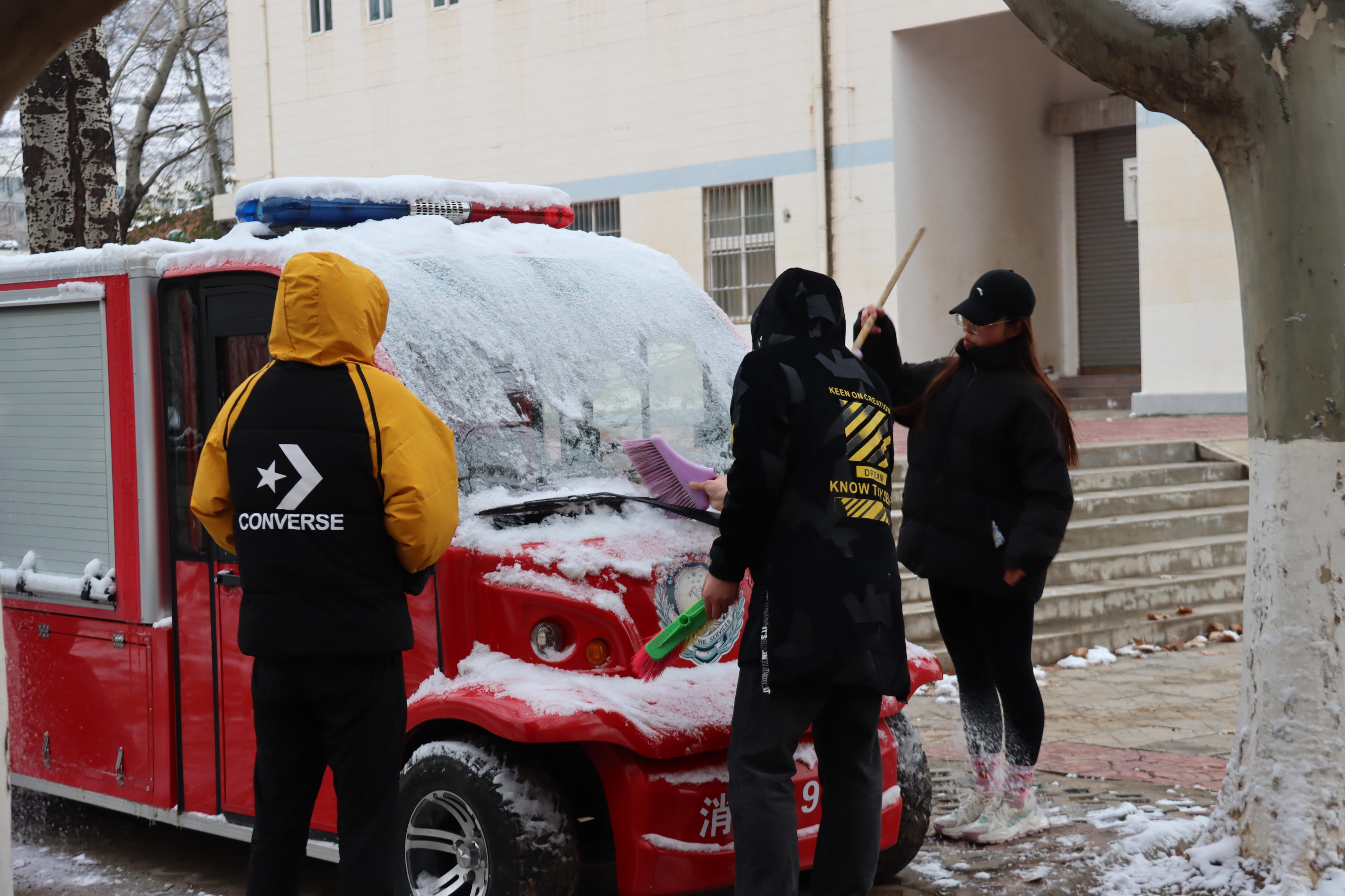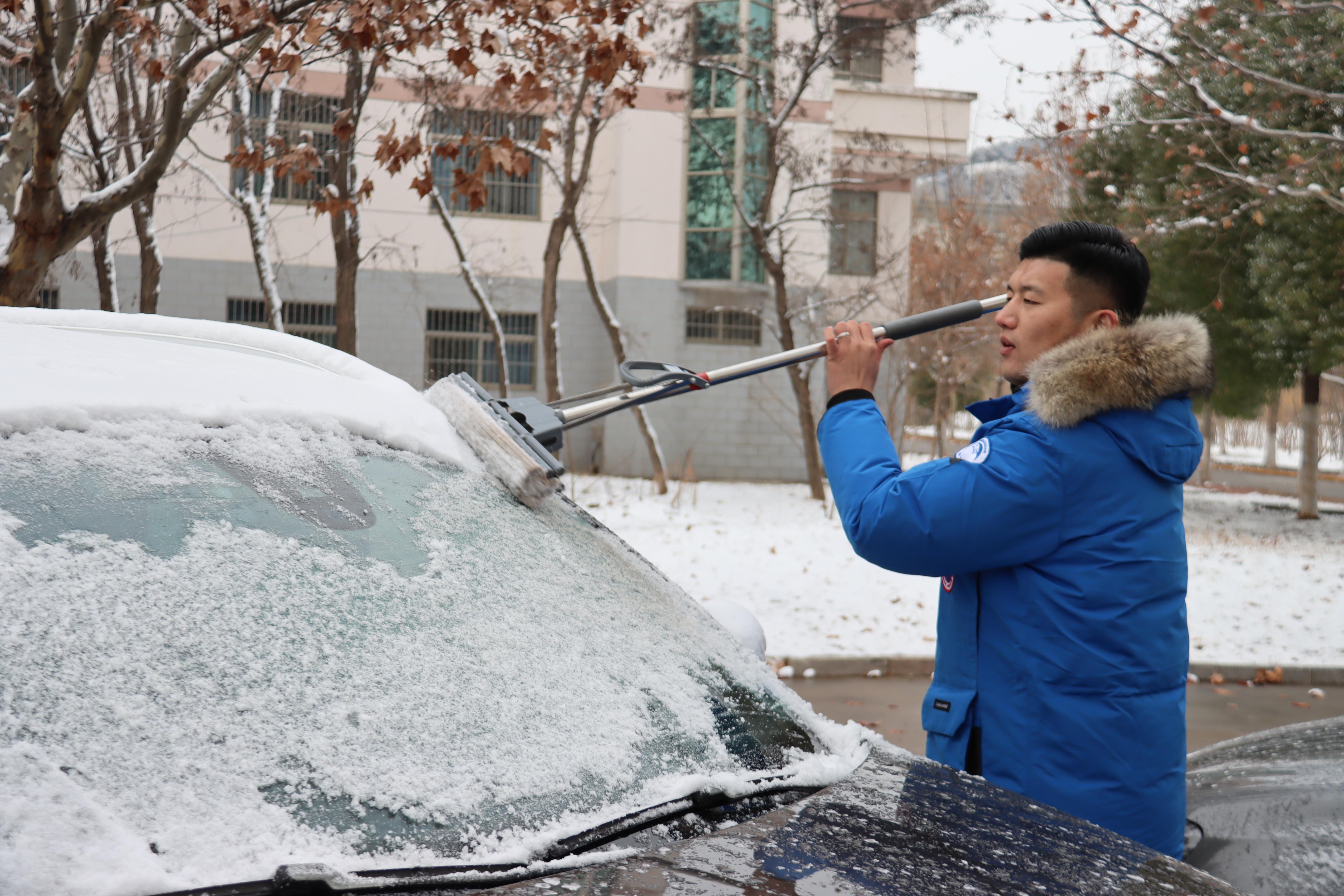 同学们拿起拖把、扫帚等工具,在综合楼、行政楼、停车场等区域为老师们的车辆清雪,不畏严寒,相互配合,虽然室外温度很低,但大家义务劳动的热情和团结的力量让这个冬日变得格外温暖。
