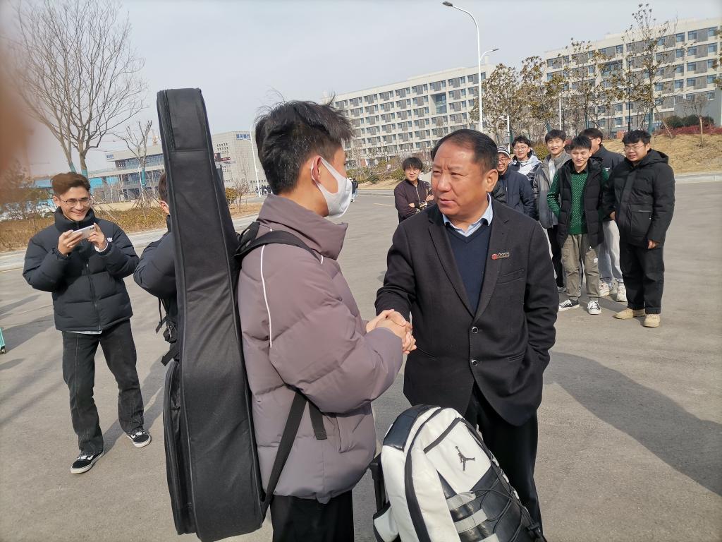 春日江山丽,和风花草香。2月23日,太阳网集团tcy8722党总支书记李永教授带领实践教学教研室负责人和办公室相关老师到豁然楼北面东西路为即将奔赴枣庄市各地区支教的14位同学送行。