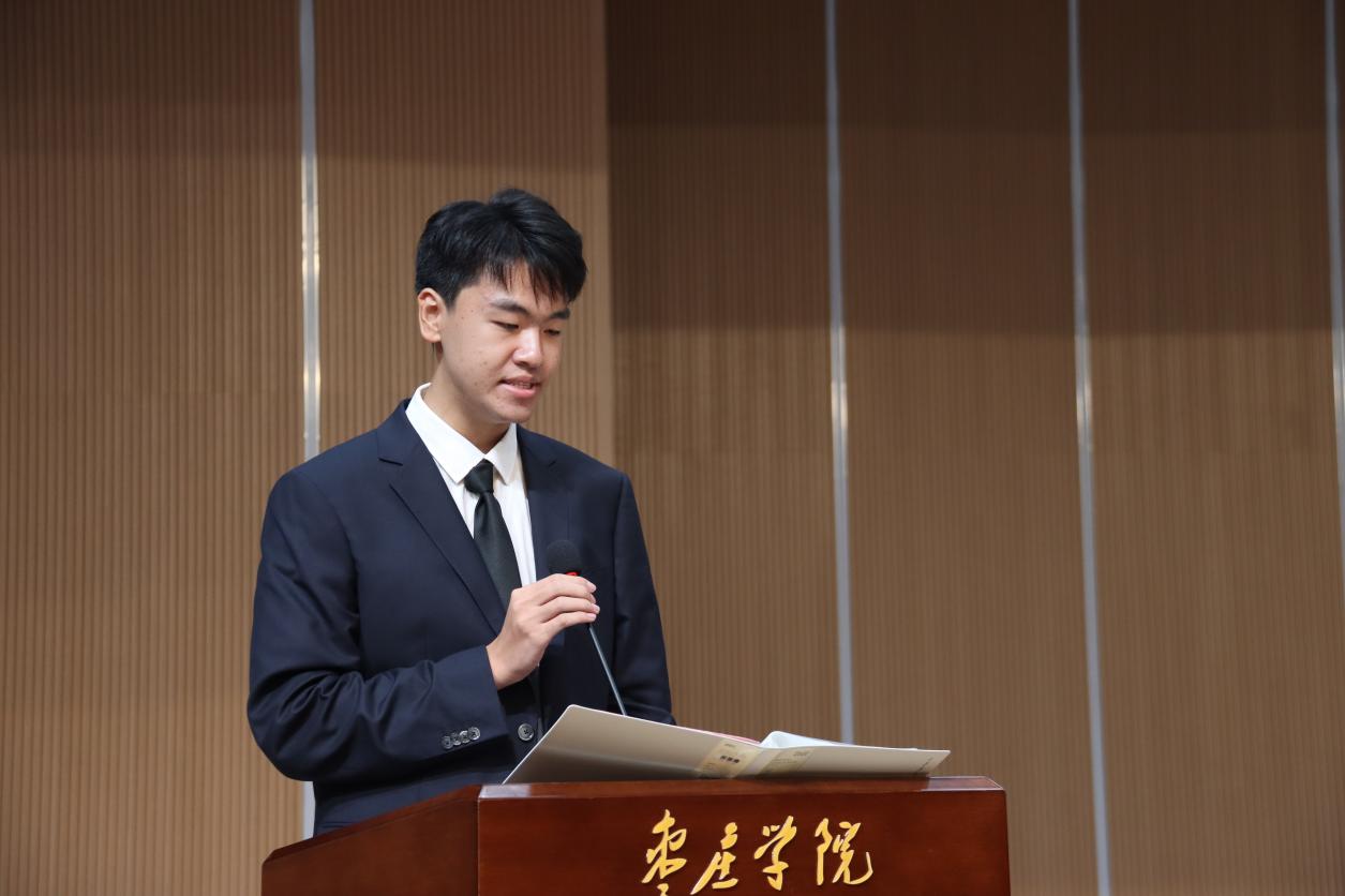 2024级新生代表孙琦同学讲出昨日新生在考场拼搏,今日相聚音舞学院,作为青年学子,一定要牢记党和国家对青年的嘱托,逐梦青春,奋楫扬帆。