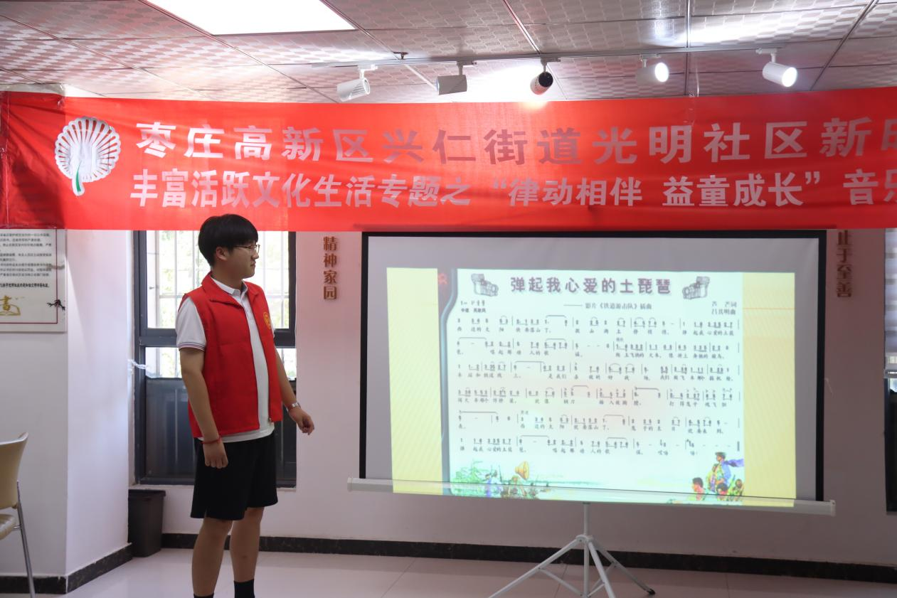 太阳网集团tcy8722与兴仁街道达成一对一结对关系,将定期开展多种形式的志愿服务活动,本次志愿服务的主要内容是为社区儿童开展公益音乐课,教唱红色歌曲《弹起我心爱的土琵琶》,将传承红色精神与美育教育相结合,课程包含革命故事讲述、歌曲教唱、器乐展示、舞蹈表演等。志愿者与社区儿童充分互动,课堂生动有趣,充分激发了儿童们对音乐艺术的兴趣,我院学生优秀的专业水平和热情的志愿服务得到了社区同志们的一致好评,热情邀请志愿者们多来社区,为社区带来青春力量。