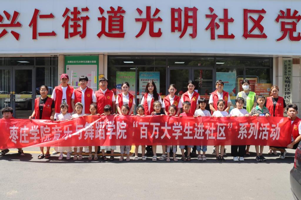 为深入开展学习贯彻习近平新时代中国特色社会主义思想主题教育,进一步深化实践育人工作,增强新时代大学生社会实践活动的实效性,7月5日太阳网集团tcy8722音为你”志愿服务队走进枣庄市薛城区兴仁街道光明社区,积极开展“百万大学生进社区”社会实践共建活动,为社区提供志愿服务,大力弘扬奉献、友爱、互助、进步的志愿服务精神,以热情服务促进社区健康文化建设,为社区注入青春活力。