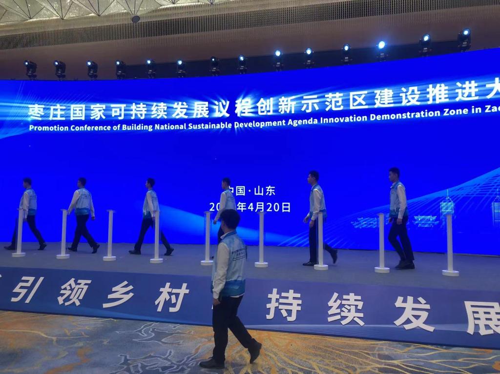 4月20日,枣庄国家可持续发展议程创新示范区建设推进大会召开。本次大会由省政府主办,市委、市政府和省科技厅共同承办。联合国开发计划署驻华机构代表,国家可持续发展实验区部际联席会议成员单位、省创建国家可持续发展议程创新示范区领导小组成员单位、已获批国家可持续发展议程创新示范区城市有关负责人,国内高校及科研机构有关专家学者等170余人参会,我院30名志愿者为大会提供志愿服务。